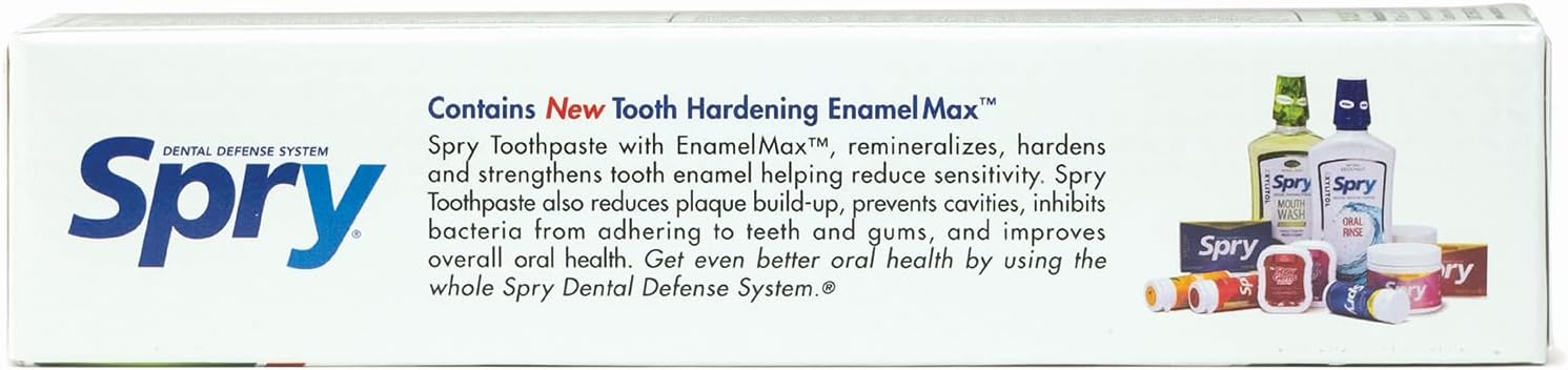 - HELPS MOISTURIZE DRY MOUTH: The xylitol found in Spry’s natural toothpaste can help moisturize dry mouth (xerostomia) by stimulating your mouth’s salivary glands. Brushing with xylitol toothpaste after meals can stimulate salivation, thus also raising your mouth’s pH level and washing plaque away through saliva. You will never want to go back to ordinary toothpaste once you have tried Spry's tasty and refreshing xylitol teeth whitening toothpaste.