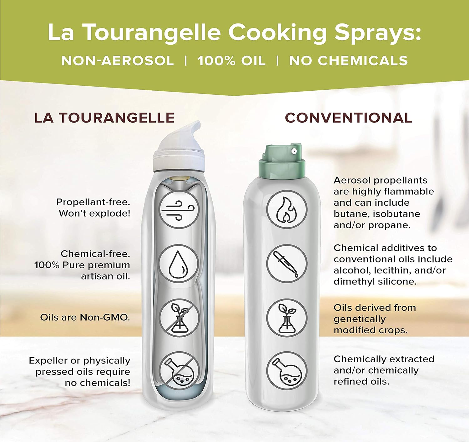 La Tourangelle, Organic Extra Virgin Olive Oil Spray, Cold-Pressed, All-Natural, Artisanal, Great for Cooking, Sauteing, Grilling, 5 Fl Oz