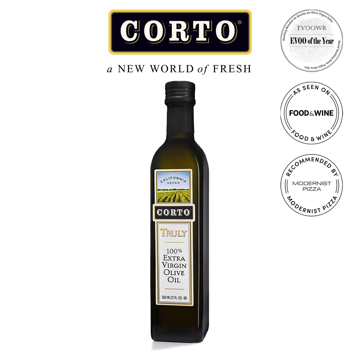 Corto TRULY® | 100% Extra Virgin Olive Oil | Floral Notes | Cold Extracted in State-of-the-Art Mill | Straight from Official Corto Olive Groves & Oil Producer | 500 mL