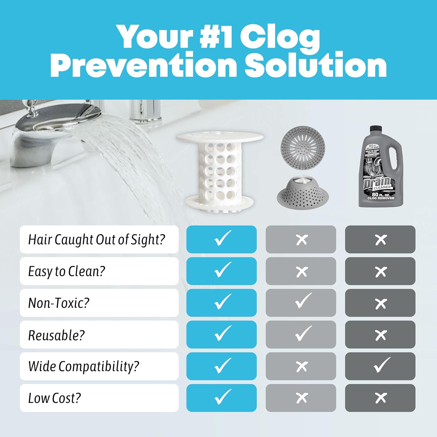 - SAVE MONEY, PROTECT THE ENVIRONMENT – With this bathtub and shower hair catcher, there are no harsh chemicals damaging your pipes and the environment. A plumber visit can be costly, and drain snakes and liquid drain cleaners aren’t always effective.