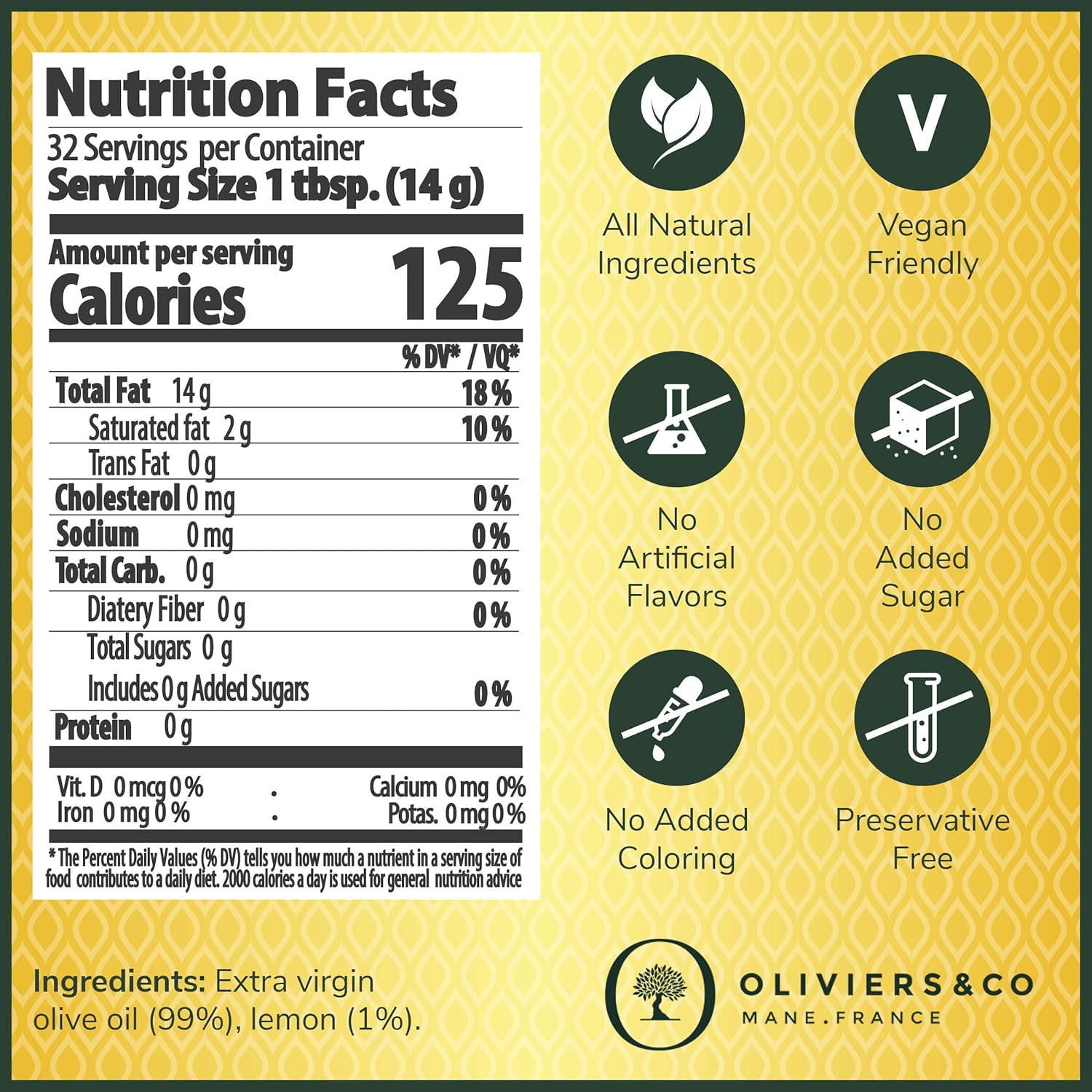 Lemon Olive Oil by Oliviers & Co. | Cold Pressed Extra Virgin Olive Oil and Fresh Lemons | Everyday and Cooking EVOO from Italy | Gourmet Flavored Lemon Oil in Tin Can | 16.8 Fl oz