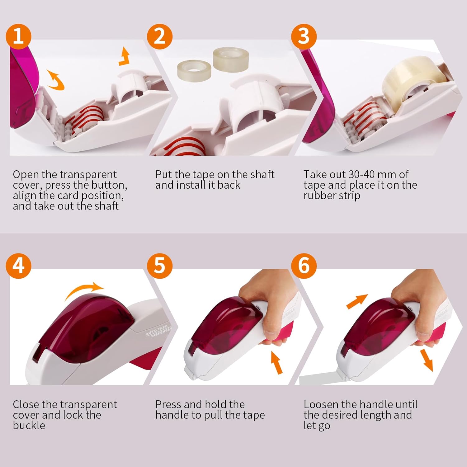 - One-Handed Automatic Tape Dispenser: Effortlessly dispense and cut tape with a single press to get 1” of tape and released to the desired length!