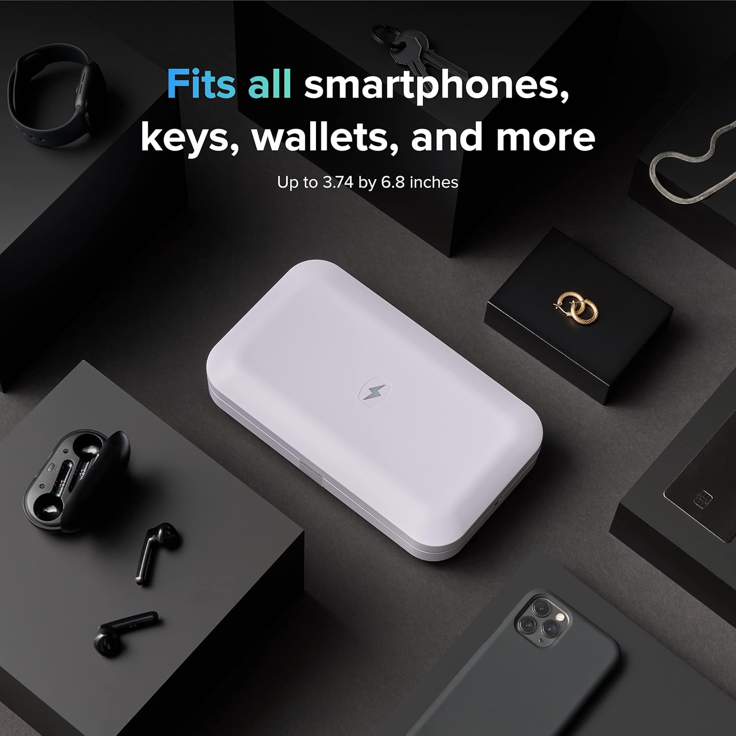PhoneSoap 3 UV Cell Phone Sanitizer & Dual Universal Cell Phone Charger Box | Patented & Clinically Proven 360-Degree UV-C Light Sanitizer | Disinfects and Charges All Phones (White)