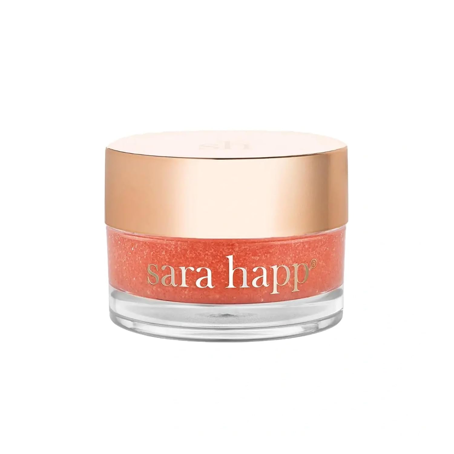 Sara Happ The Lip Scrub: Sparkling Peach Sugar Scrub for Dry Lips - Gently Exfoliate, Polish, and Revitalize Lips with Vitamin E and Jojoba & Grape Oils, Vegan, 0.5 oz.