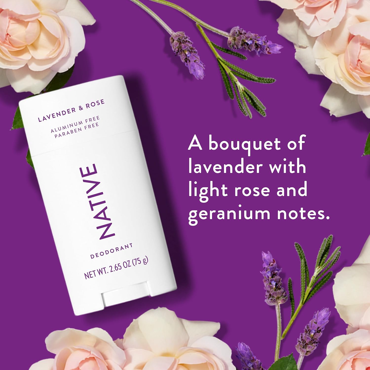 Native Aluminum-Free Clean Deodorant with Natural Derived Ingredients, 72HR odor control | Deodorant for Women and Men, With Baking Soda, Coconut Oil, Shea Butter | Lavender & Rose