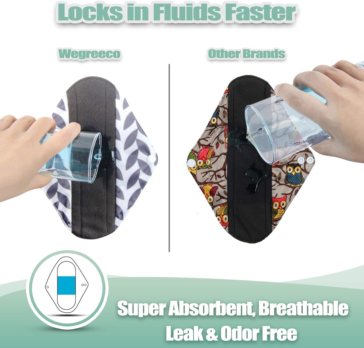 - CHARCOAL INNER LAYERS of these cloth menstrual pads is soft with maximum and have a stay dry surface.The dark color is forgiving of stains and Not only great at soaking up liquid, smells are neutralized.Middle layers microfiber make this reusable sanitary napkin super absorbent