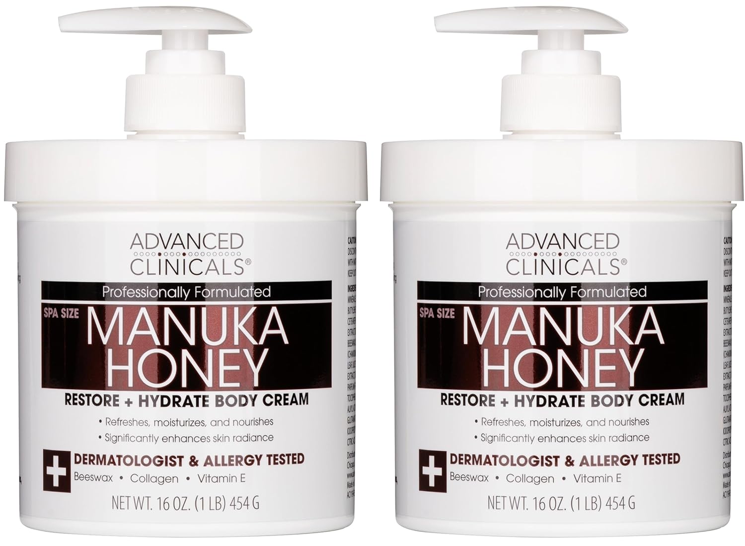 Advanced Clinicals Manuka Honey Body Cream For Women & Men | Body Butter Lotion For Extremely Dry Skin | Collagen Cream | Skincare Moisturizer Hydrating Balm Improves Look Of Aging Skin, 16Oz, 2-Pack