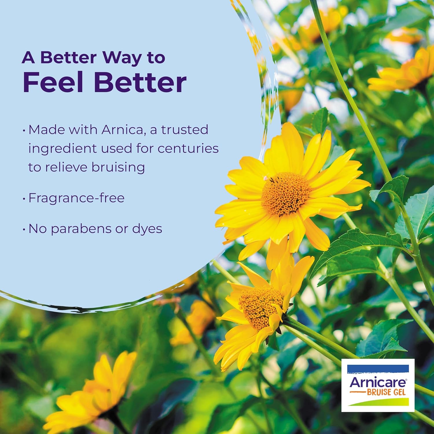 - This non-sticky, non-greasy gel is quickly absorbed by the skin. Arnicare Bruise works best when applied at the first sign of pain.