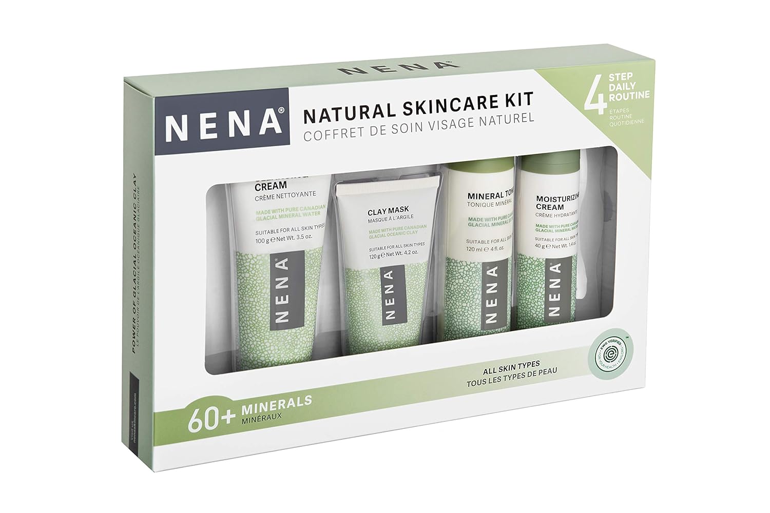 NENA Natural Skincare Kit | 4-Piece Daily Skin Essentials for Women & Men - for Dry, Oily, Normal and Sensitive Skin | EWG Verified, Cruelty Free & Vegan-Friendly