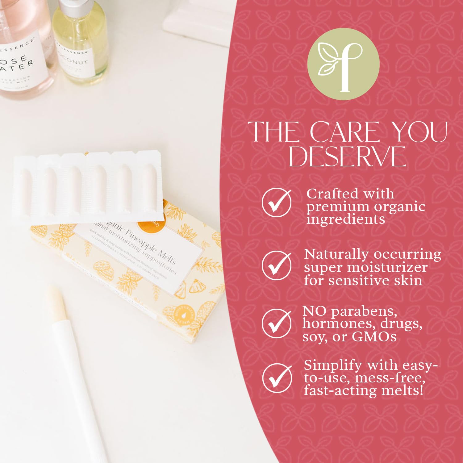 Femallay Organic Vaginal Moisturizing Suppositories – Pineapple – 100% Natural Relief for Dryness, Odor & Daily Feminine Discomfort – 14 Count + Applicator