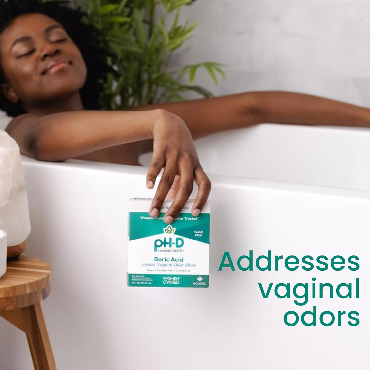 - VAGINAL ODOR: pH-D Instant Vaginal Odor Rinse is made with boric acid and purified water and can be used for feminine odor. It can be used with pH-D Boric Acid Vaginal Suppositories and pH-D Body Fresh Spray as a complete system.