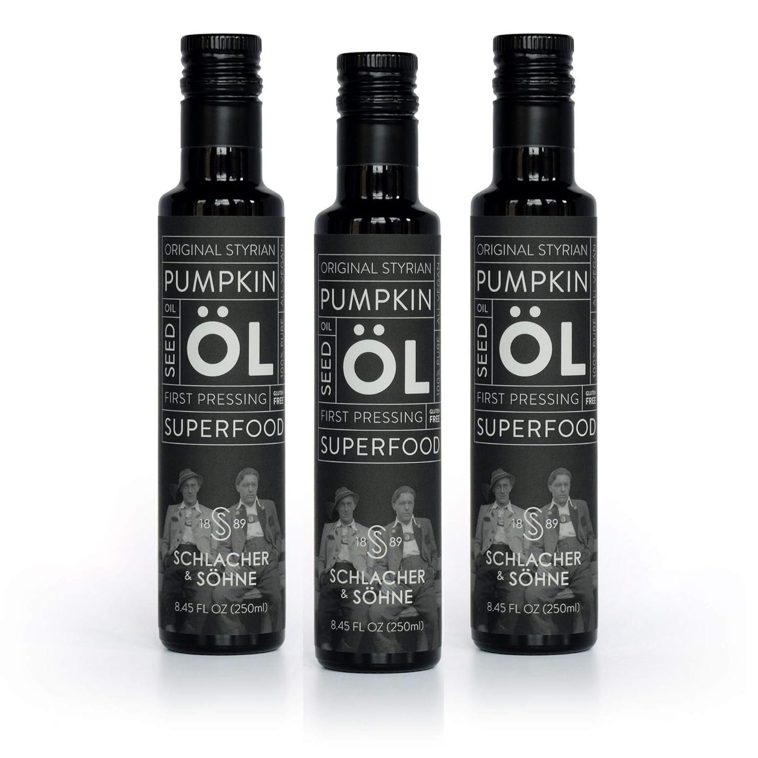Schlacher & Söhne Styrian Pumpkin Seed Oil: 100% Pure, Cold Pressed, Non GMO, Gluten Free, Vegan, May Helps in Hair Growth, Made in Austria (3 Pack of 250 ml)