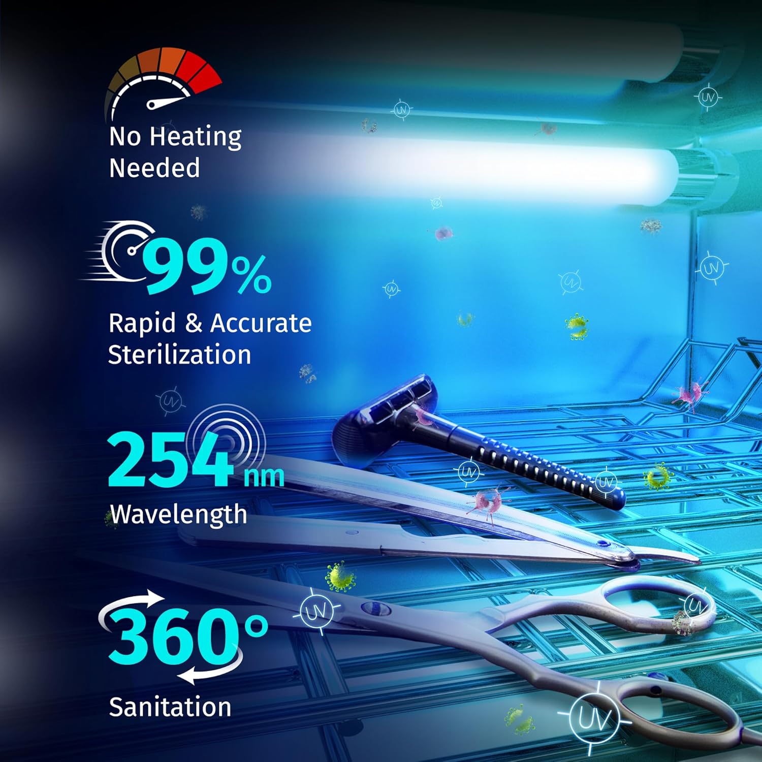 - Sanitization Efficiency – The JJ CARE UV Sanitizer Cabinet delivers exceptional sanitation using advanced UV technology. Sanitize your tools in just 30 minutes—without relying on harsh chemicals. Experience a fast, convenient, and chemical-free sanitization solution designed for ultimate effectiveness!