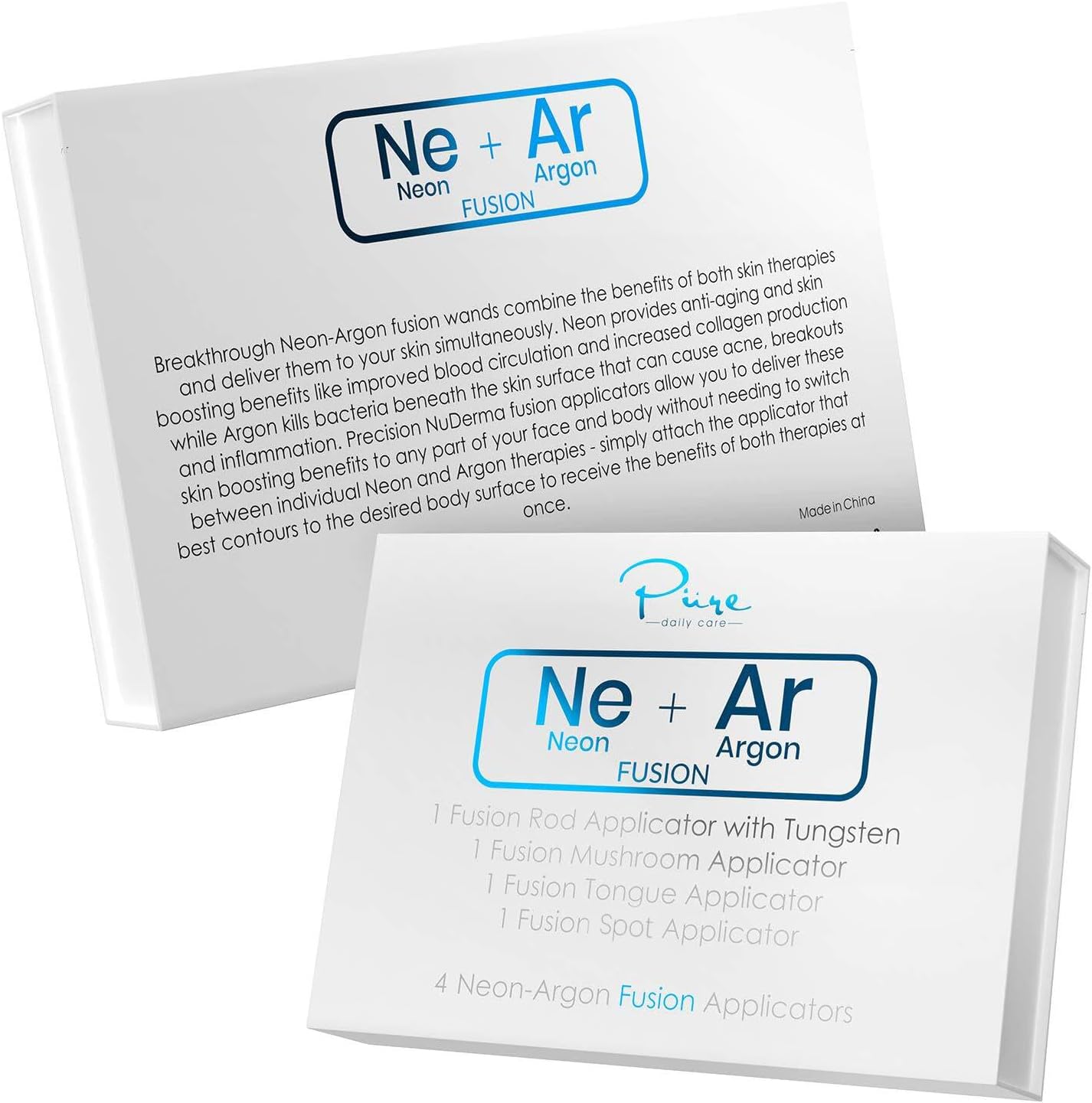 - 4-Piece Fusion Accessory Set - This add on 4-piece set features NuDerma's breakthrough fusion wands that combine the effects of neon and argon into a universal applicator to offer the best effects. PLEASE NOTE NUDERMA WAND HANDLE IS NOT INCLUDED - This is just an add-on 4 piece wand set