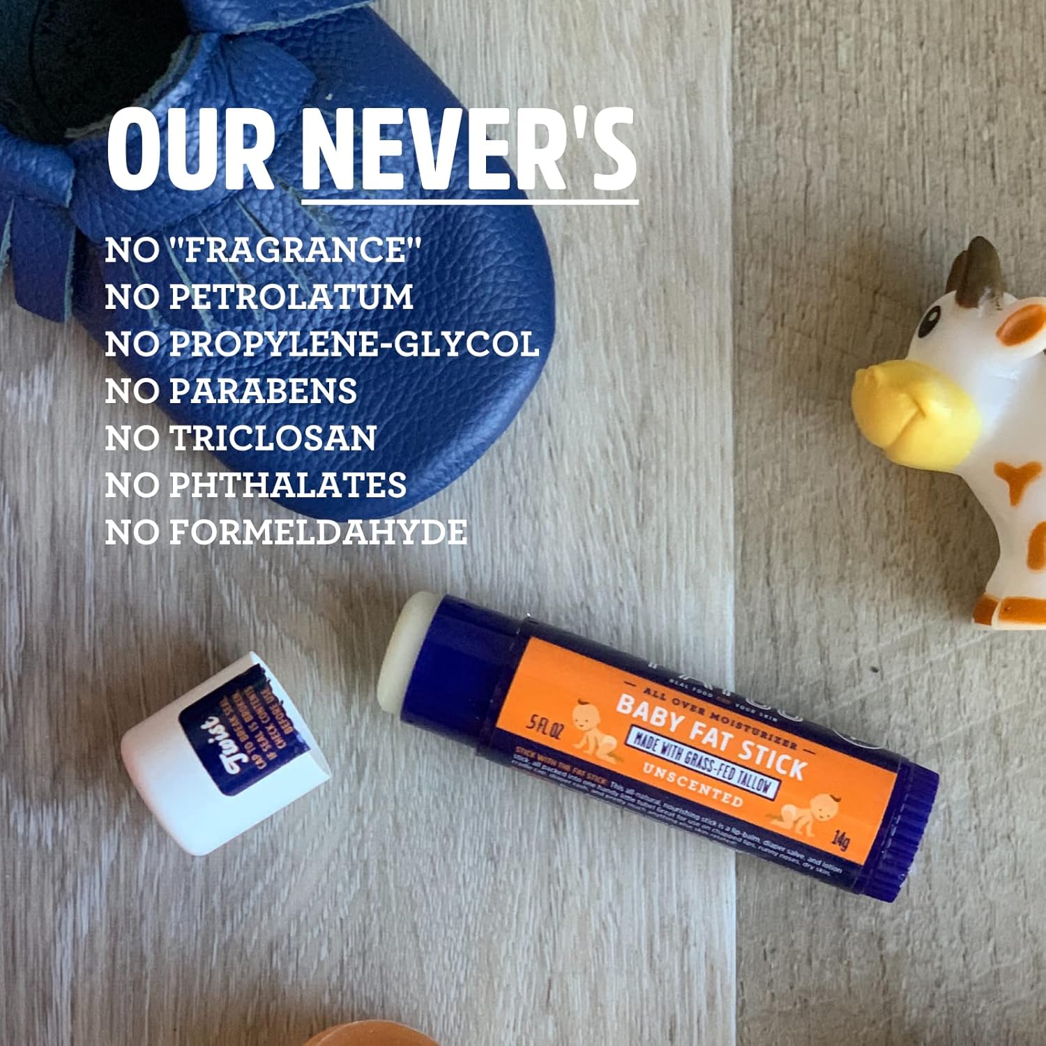 - FATCO BABY FAT STICK UNSCENTED – This all natural, nourishing stick is a lip balm, diaper salve, and lotion stick, all packed into one handy tube; great for use on chapped lips, runny noses, dry skin, cradle cap, diaper rashes, and pretty much anything else skin related