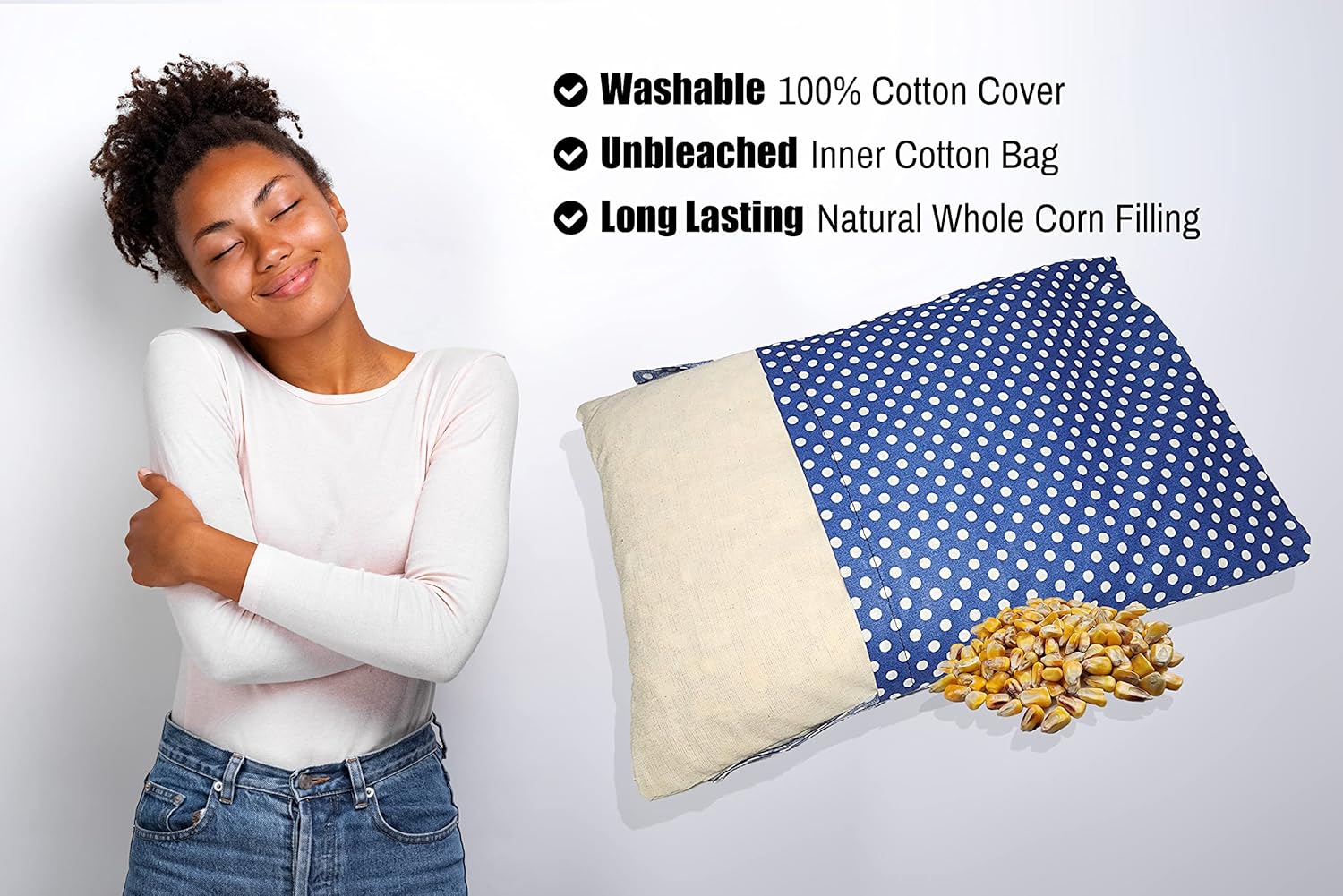 Microwavable Corn Filled Heating Pad and Cold Pack/Washable 100% Cotton Cover (Polka Dot - Blue, 7.5in W x 11in L)