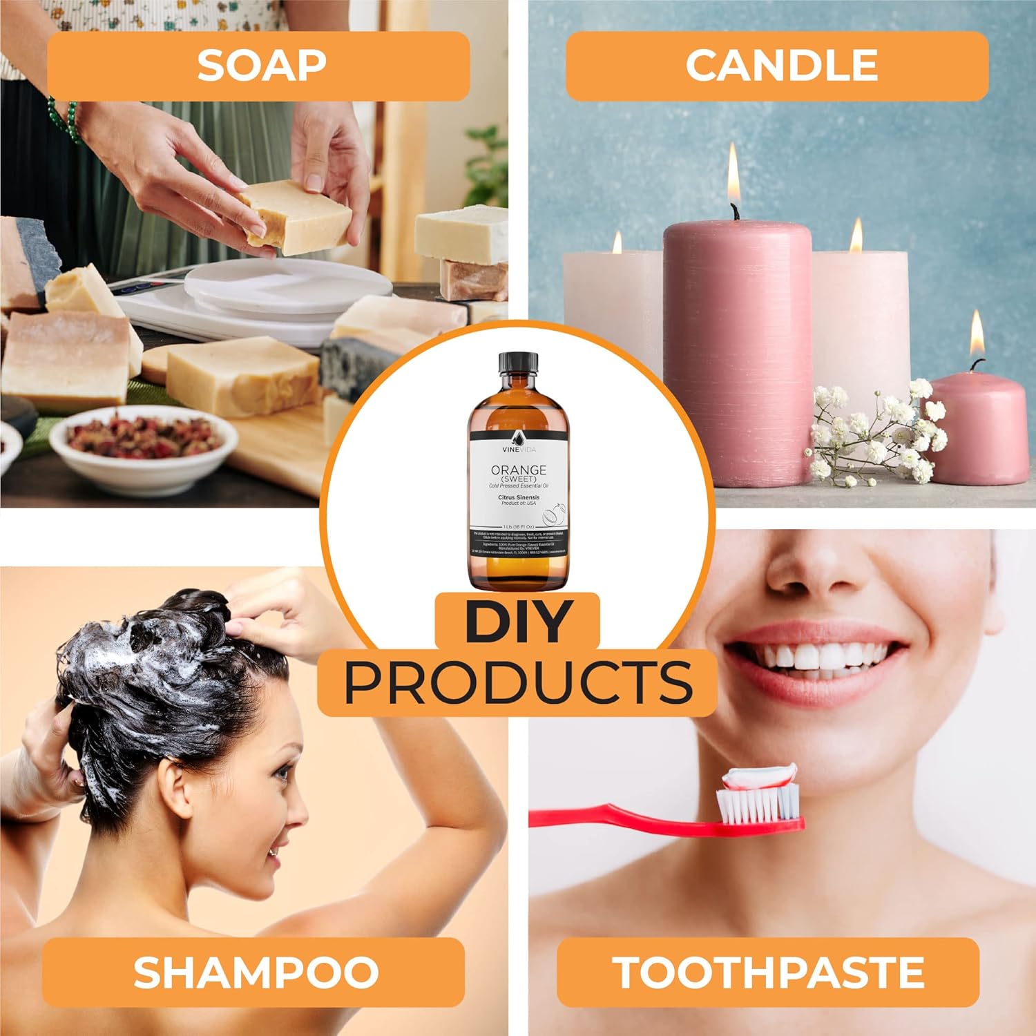 VINEVIDA Orange Sweet Essential Oil - 16 oz - Undiluted - DIY Candle Scents - Bulk for Soap Making & Skin Safe