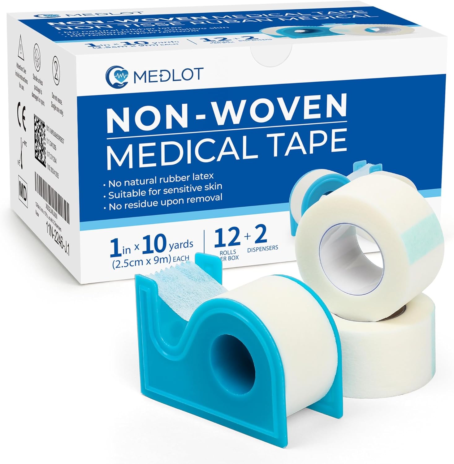 LotFancy Medical Tape,12Rolls 1inch x 10Yards, Surgical Paper Tapes, Wound First Aid Tape, 2 Dispensers Included