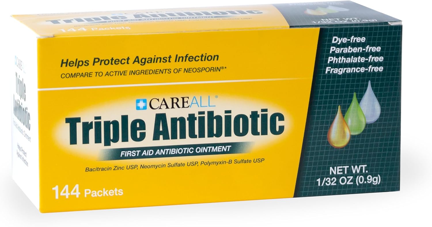 CareAll Triple Antibiotic Ointment (144 Pack), 0.9gr Foil Packet. First Aid Ointment That Prevents Infection in Minor Cuts, Scrapes, and Burns