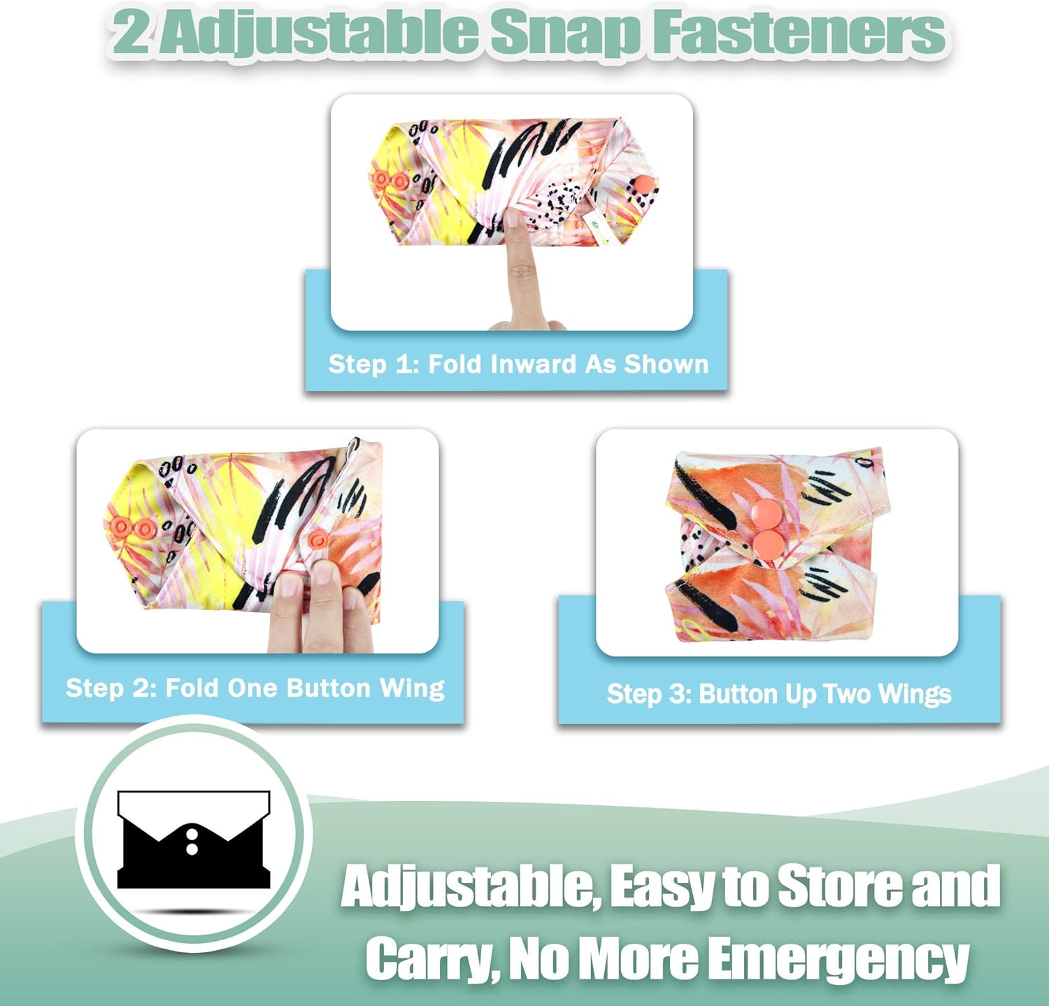 - Two Snaps Design for better fasten the pads around your underwear and make it more security. Change pad every 2-6 hours or as needed