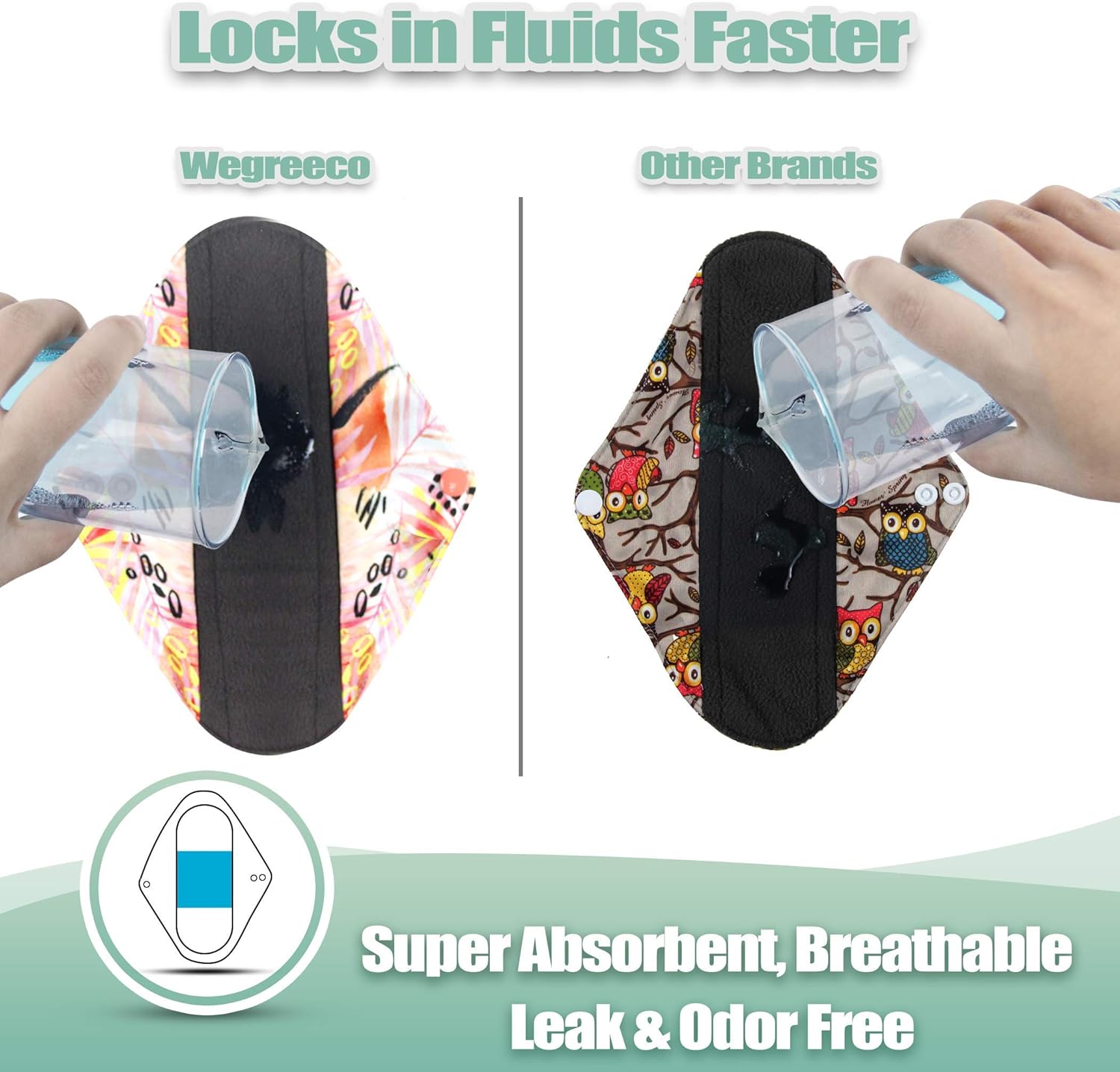 - Lovely Print Leak-free Outer of Cloth Sanitary Napkin and comfort of the softer, charcoal layer against your skin. Great as period panties too. Fold over and snap into place. Never feel embarrassing