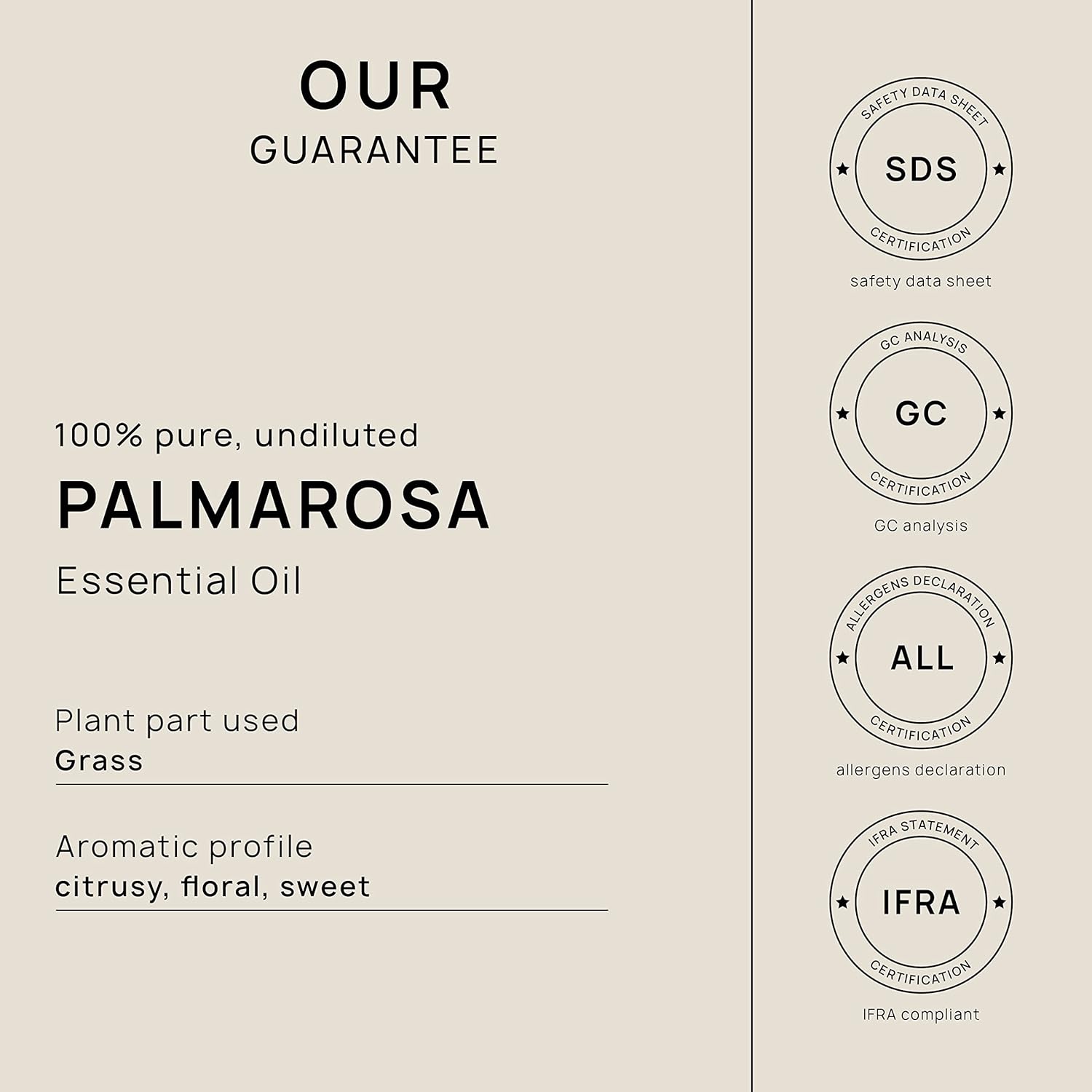 - Quality - We produce our Palmarosa essential oil using pure, natural, and raw ingredients.