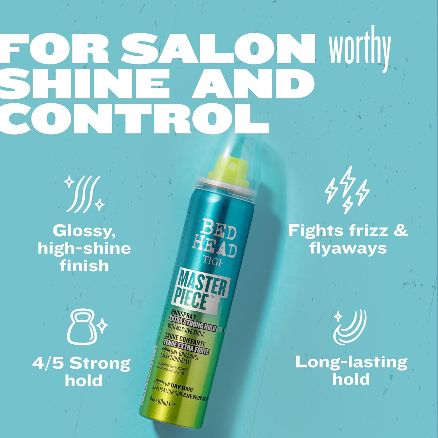 TIGI Bed Head Frizz Control Travel Hairspray Extra Hold Masterpiece Hair Care Spray for Incredibly Shiny and Glossy Hair, 2 oz, Mini Hair Spray