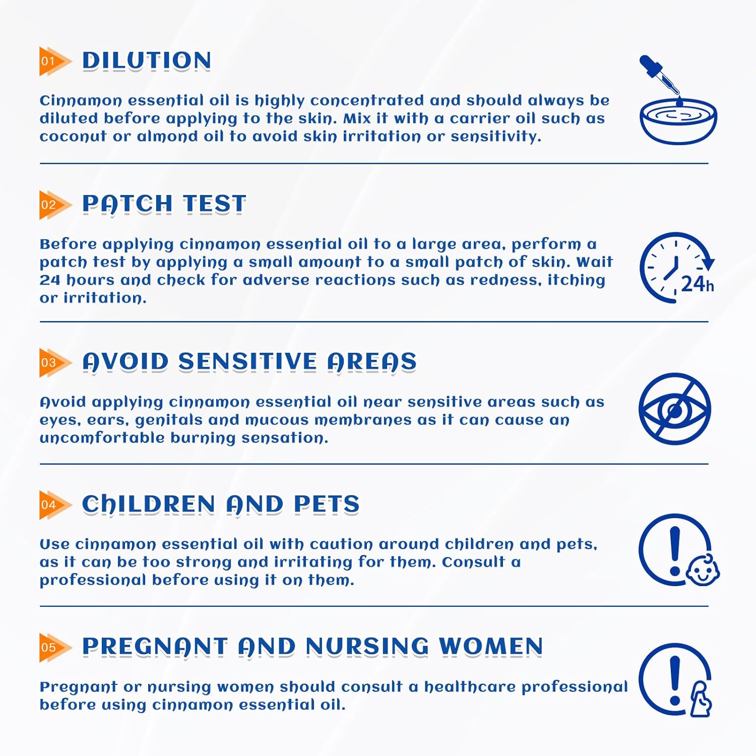 - Multiple Use Scenarios: Add 1-2 drops of cinnamon essential oil to your diffuser to eliminate odors. It is also great for kitchens, showers, bathtubs, toilets, cars, air freshening, offices, bedrooms, yoga, saunas, spas, aromatherapy and outdoor spaces