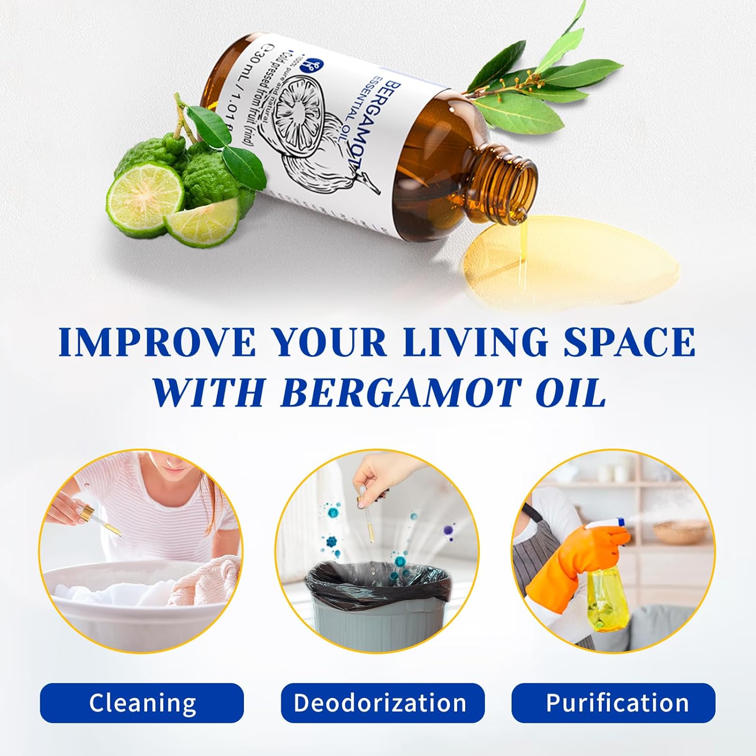 HIQILI Bergamot Essential Oil for Diffuser, Skin, Hair, DIY, 100% Pure & Natural - 1.01 Fl Oz (30 mL)