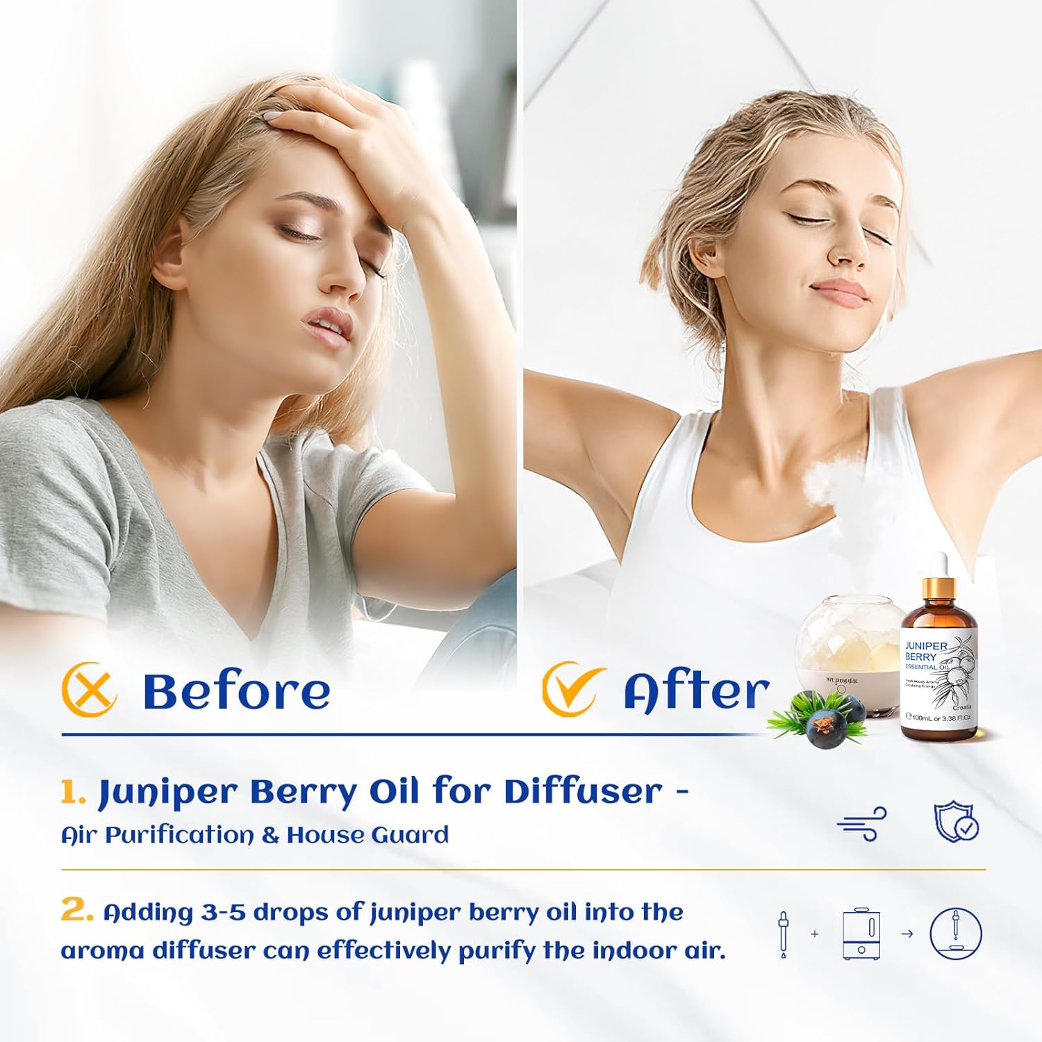 - Multi-Purpose: Juniper berry essential oil has a multi-purpose natural remedy with a warm and comforting aroma that can help relax the mind. Promote a clear, healthy complexion
