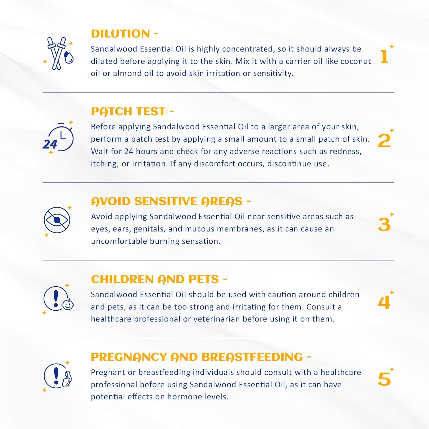 - Multi Purpose: Sandalwood essential oil has a wide range of uses, it can be used to moisturize the skin, improve the skin condition, and its strong and long-lasting fragrance is also very suitable for perfume blending
