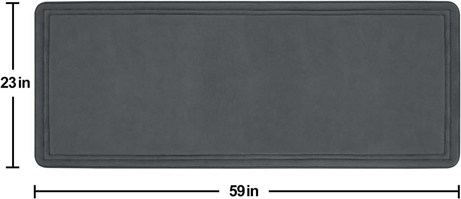 ITSOFT Memory Foam Bath Mat 59x23, Non Slip, Machine Washable, Quick Dry & Absorbent Rugs, Bath Mats for Bathroom Floor, Tub & Shower, Bathroom Rug, Charcoal Gray