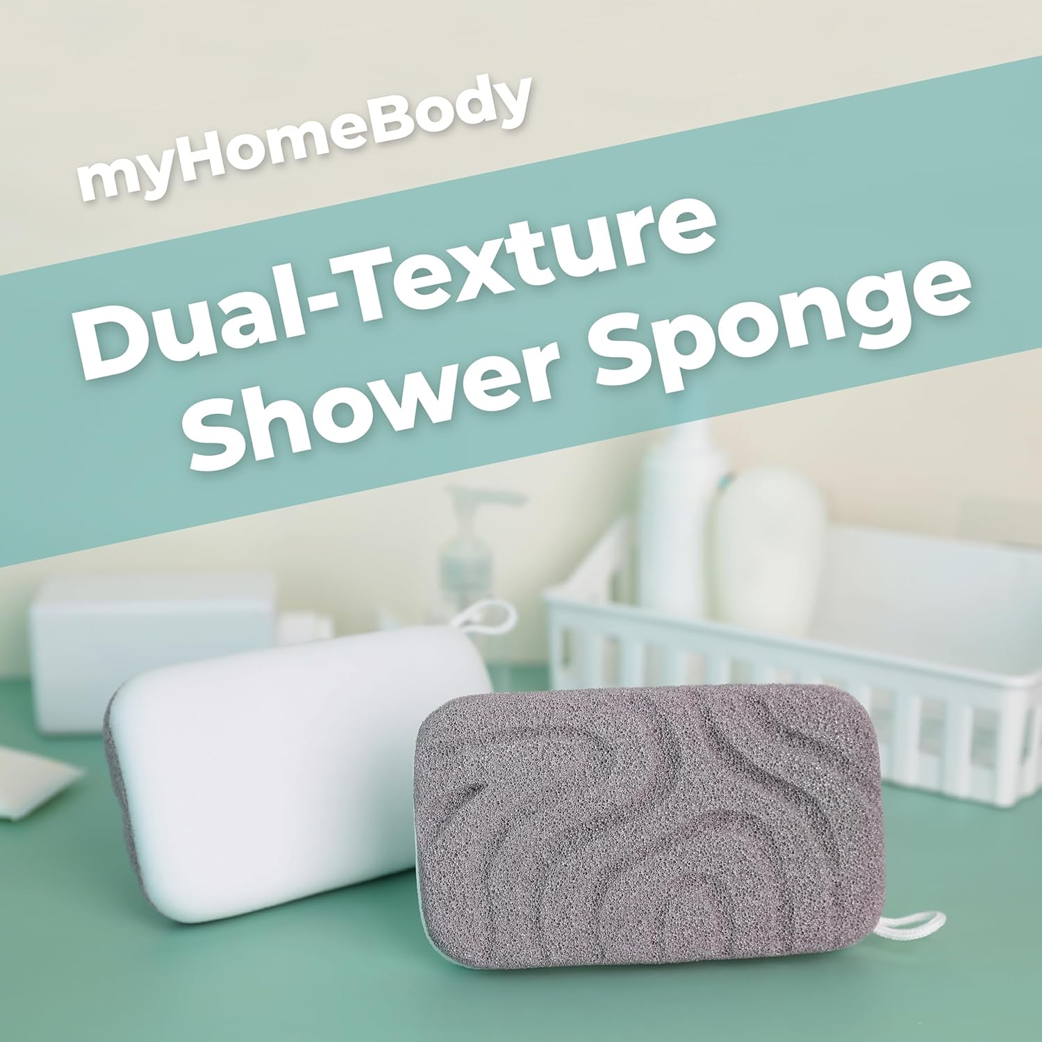 myHomeBody Dual-Texture Shower Sponge, Beauty Body Scrubber Exfoliator for Women, Exfoliating Loofah for Men, 1pc