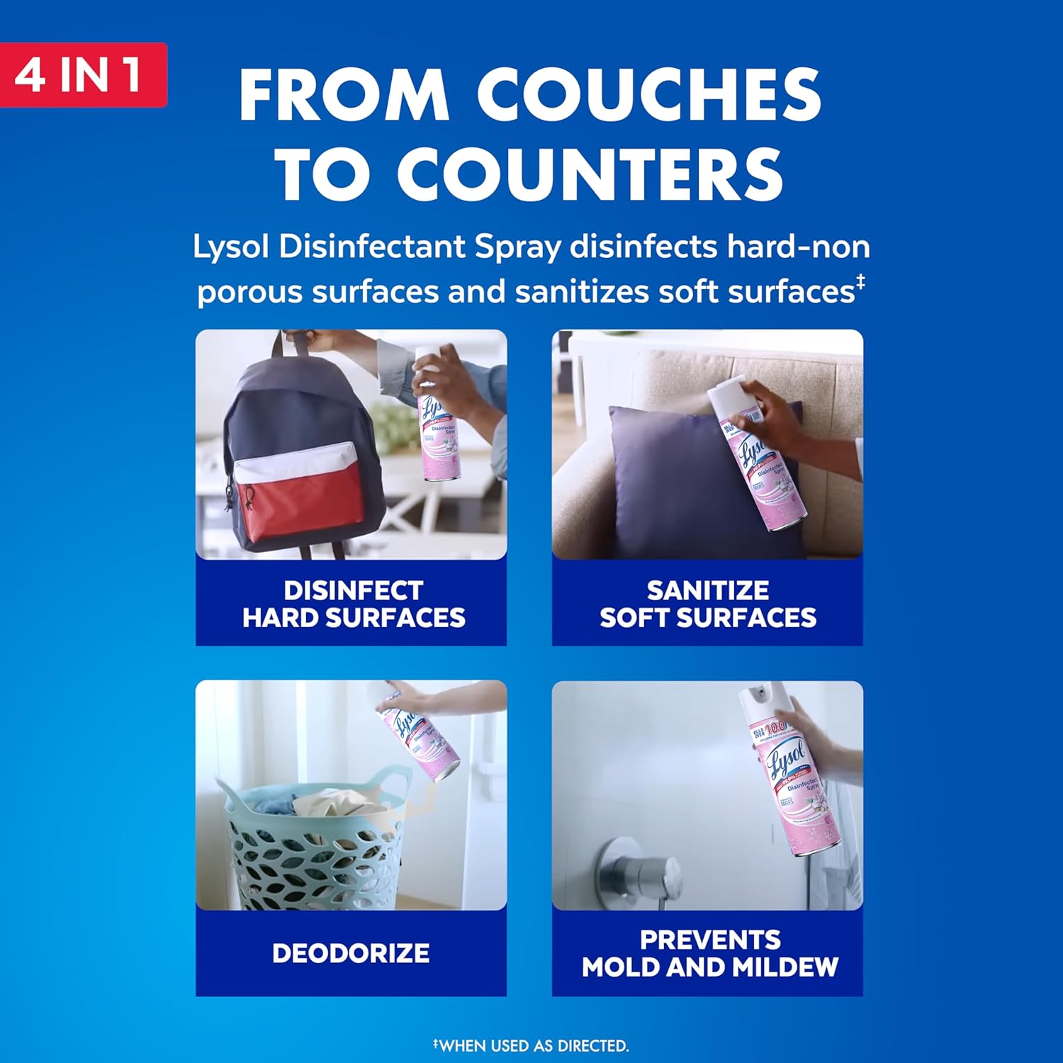 - LYSOL DISINFECTANT SPRAY: This household essential is tested and proven to kill 99.9% of viruses and bacteria, including the Covid-19 virus, Norovirus, and cold and flu. Perfect for any room, this Lysol spray will sanitize, disinfect, and deodorize your home.