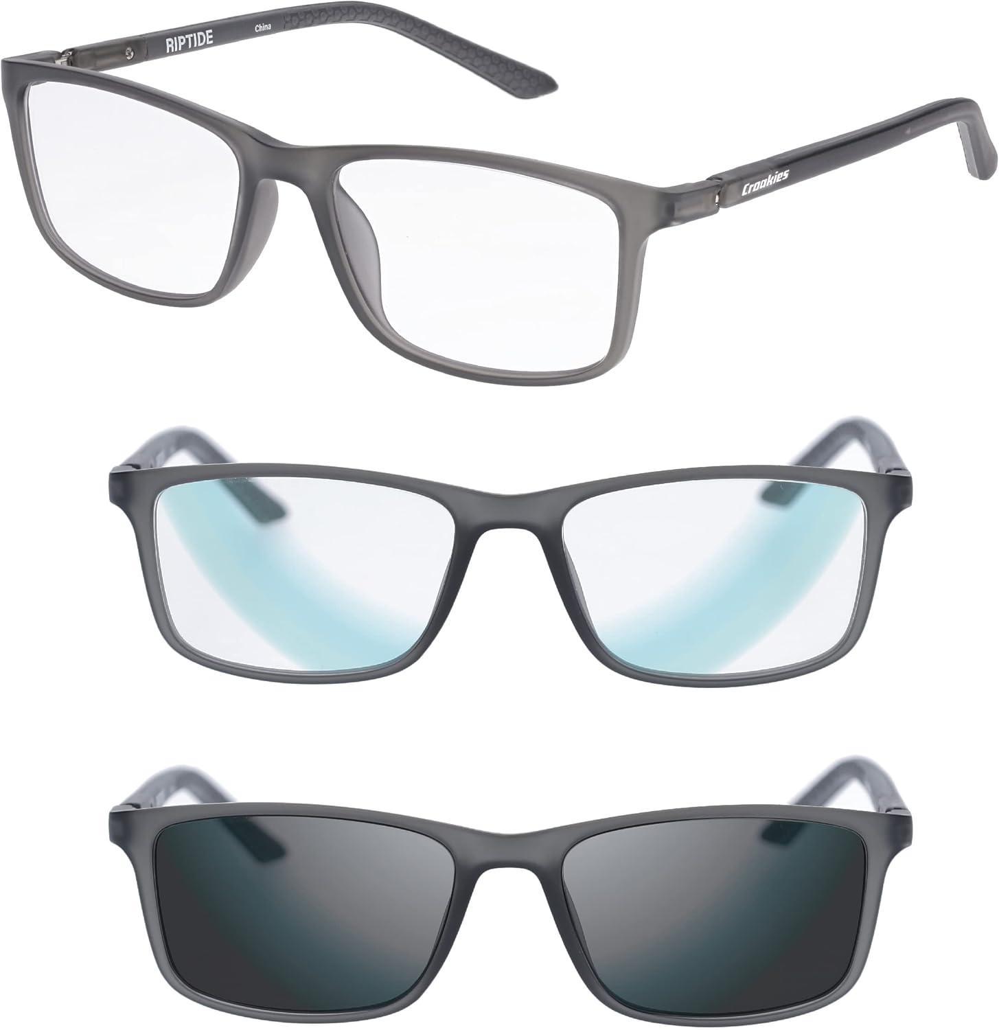 Croakies Riptide Photochromic Progressive Eyewear | UV400 Sunglass for Outdoor | Bluelight Eyeglass for HEV Devices | Bundle