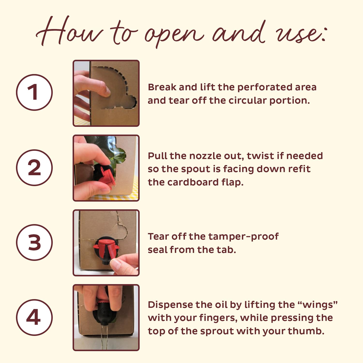 - CLIMATE-FRIENDLY 5L BOX: This 5 Liter Bag-in-Box is more environmentally friendly to ship, and is equivalent to 10 of our 16.9 Fl Oz (500 mL) tin cans. It comes with a spout for pouring oil directly onto your cooking surface, or for refilling reusable oil bottles.
