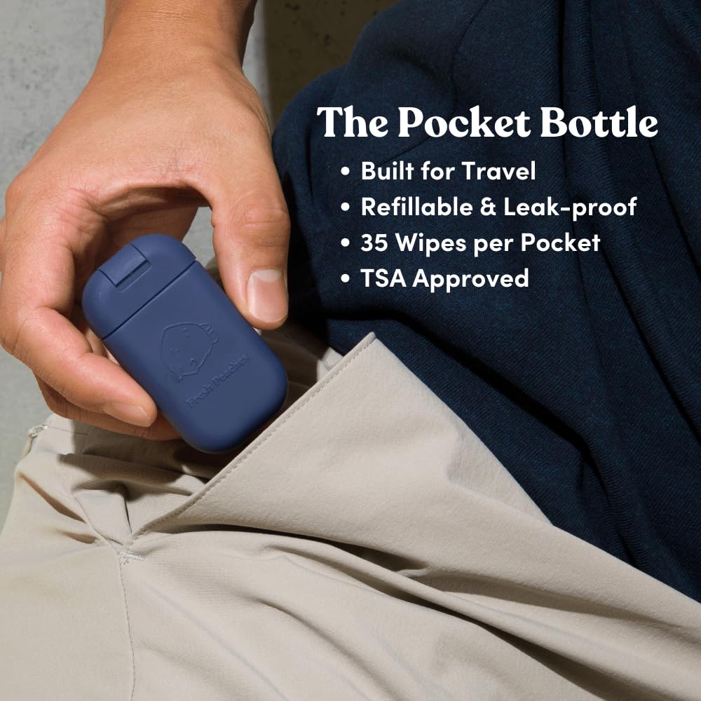 Toilet Paper Gel, Wet Wipe Alternative – Flush-Safe, A Cleaner Way to Wipe – Toilet Paper Spray (Blue Pocket, Starter with Pocket) – 4.4 oz