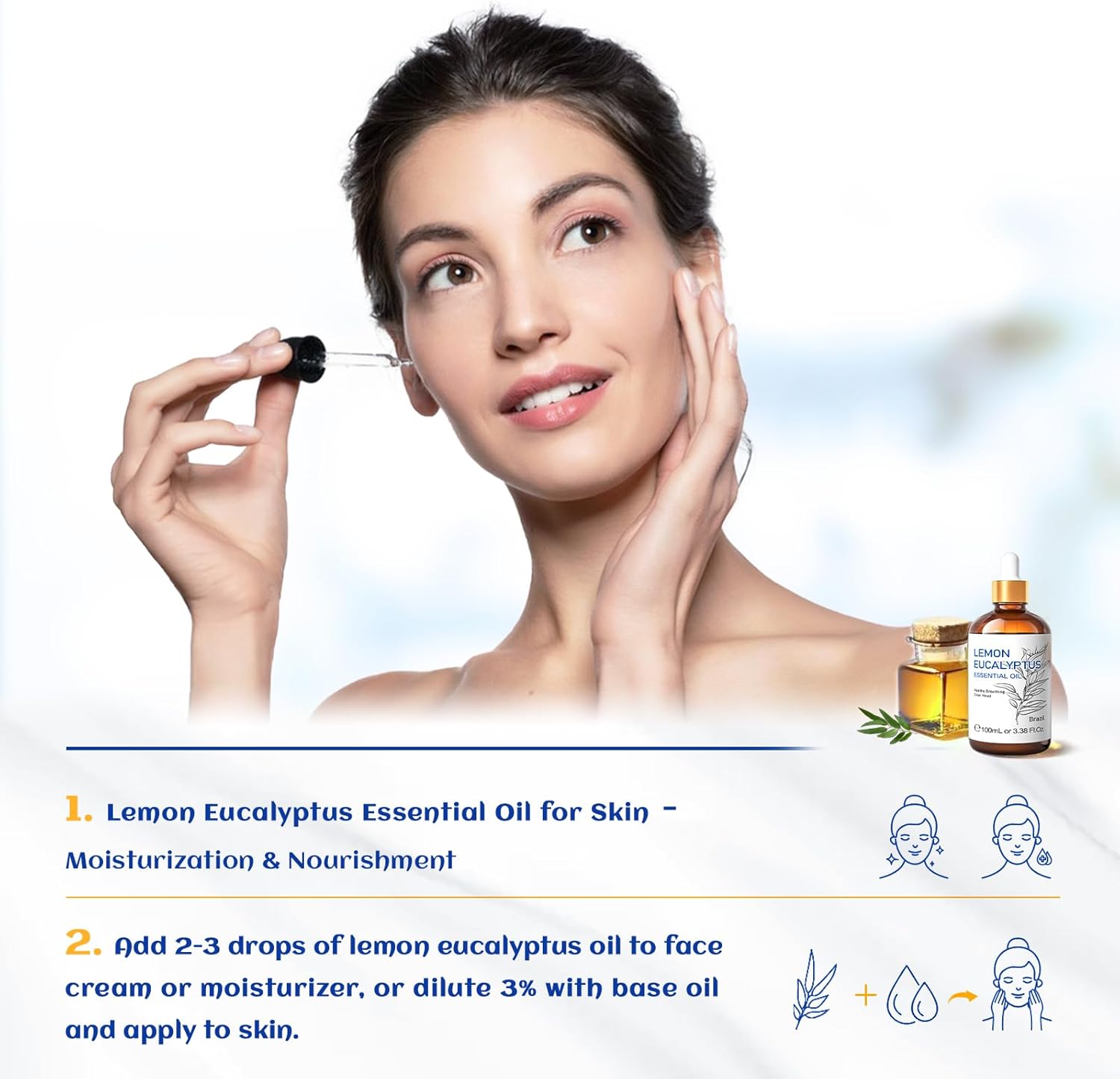 - Diffuser: Add 3-5 drops of lemon eucalyptus oil to the diffuser, not only make the room smell fresh and pleasant, but also drive away small animals, suitable for humidifier, atomizer, bedroom, living room, bathroom, shower room