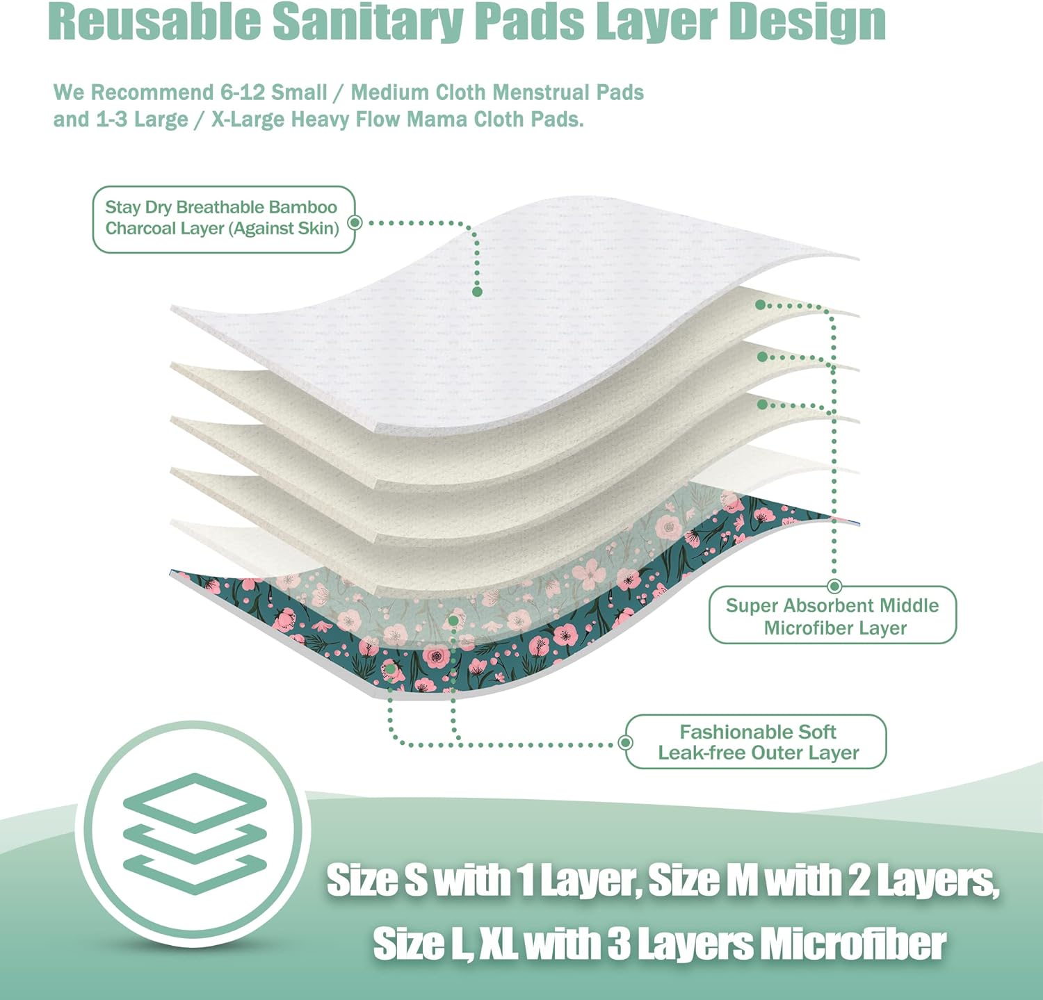 - Lovely Print Leak-free Outer of Cloth Sanitary Napkin and comfort of the softer, charcoal layer against your skin. Great as period panties too. Fold over and snap into place. Never feel embarrassing