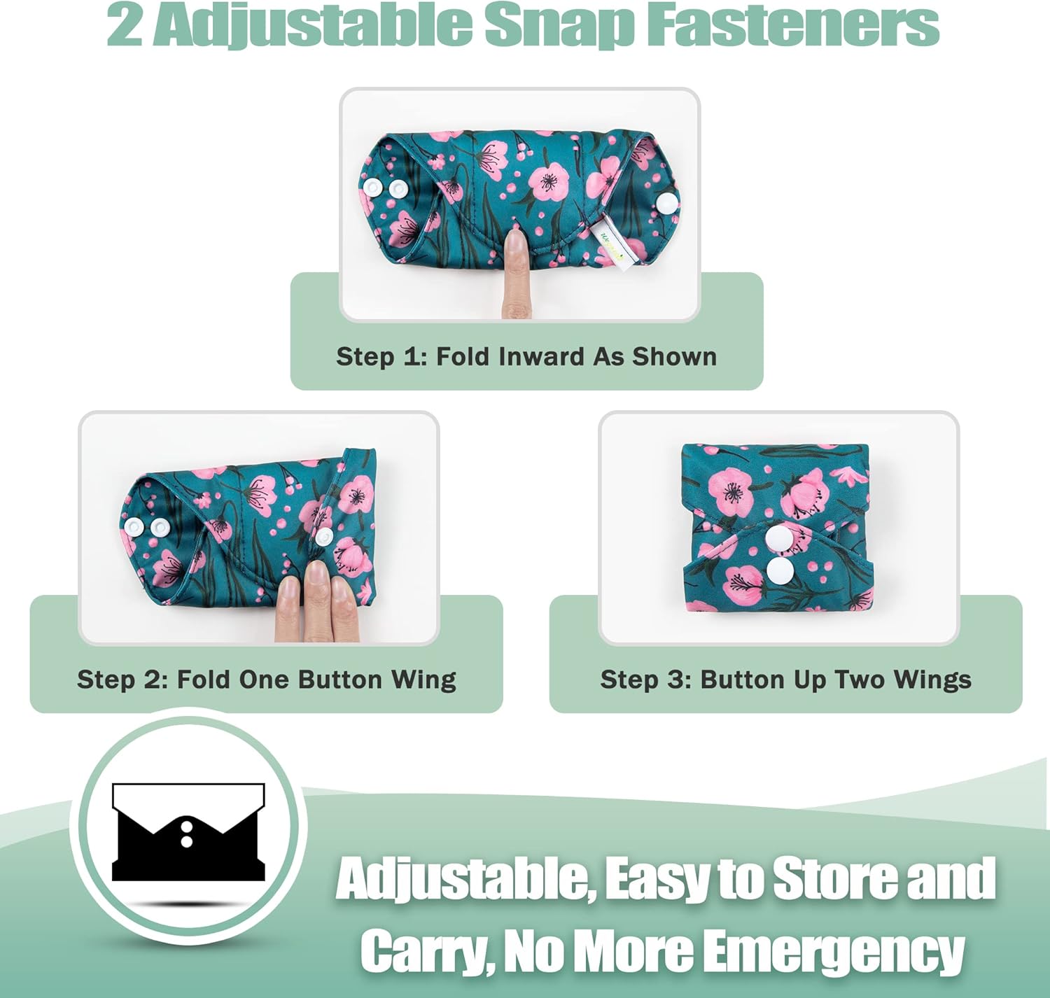 - Two Snaps Design for better fasten the pads around your underwear and make it more security. Change pad every 2-6 hours or as needed