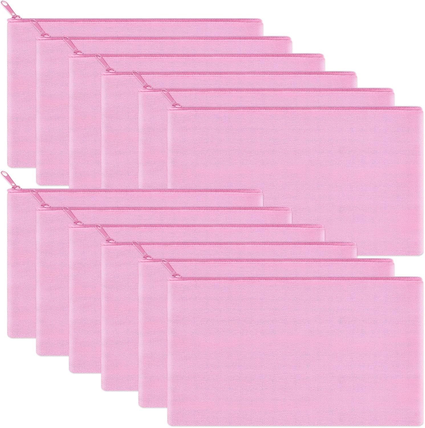 12 Pieces Cotton Canvas Makeup Bag, Multipurpose Cosmetic Bag with Zipper Travel Toiletry Pouch, Blank DIY Craft Bag (Pink, S)