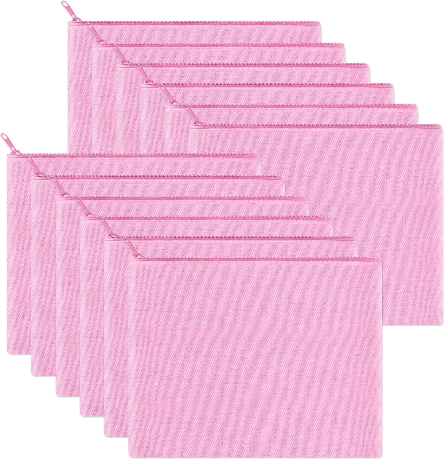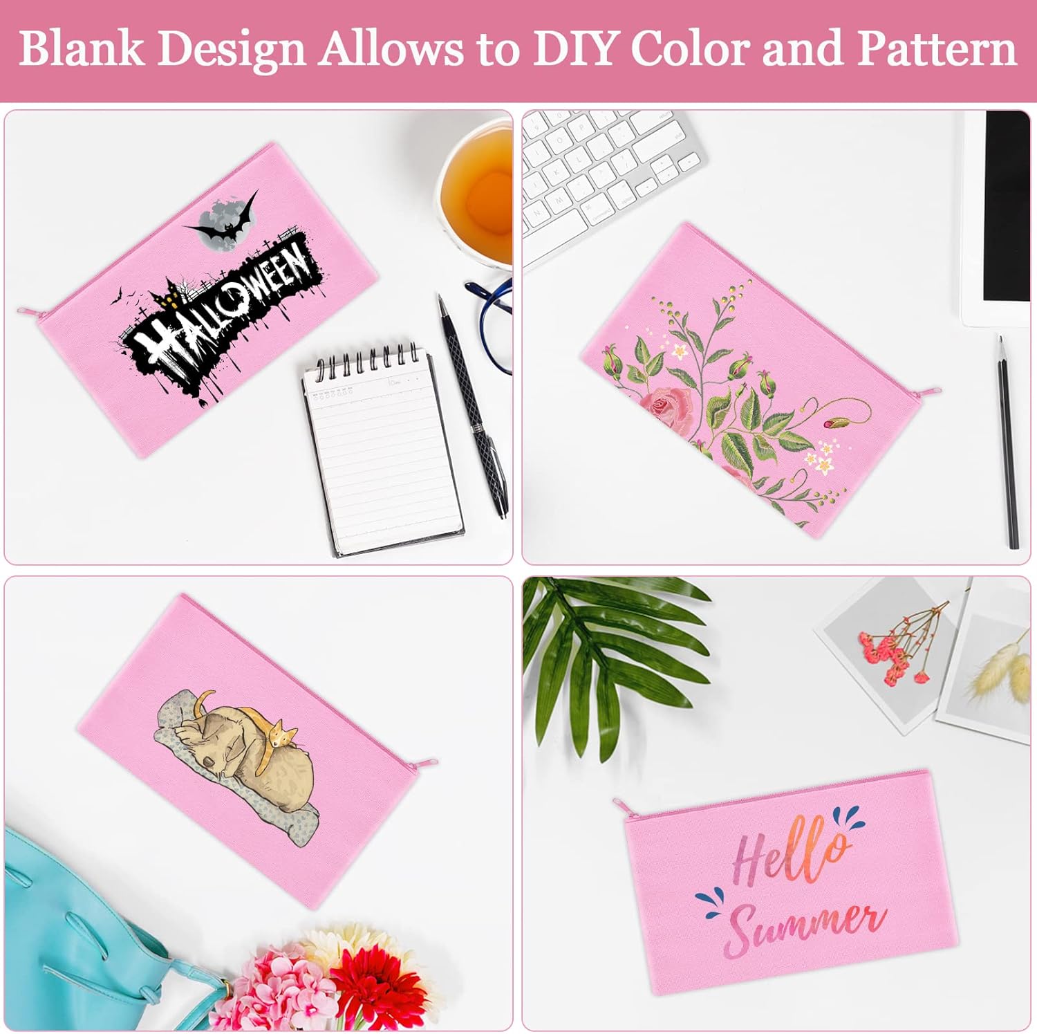 12 Pieces Cotton Canvas Makeup Bag, Multipurpose Cosmetic Bag with Zipper Travel Toiletry Pouch, Blank DIY Craft Bag (Pink, L)