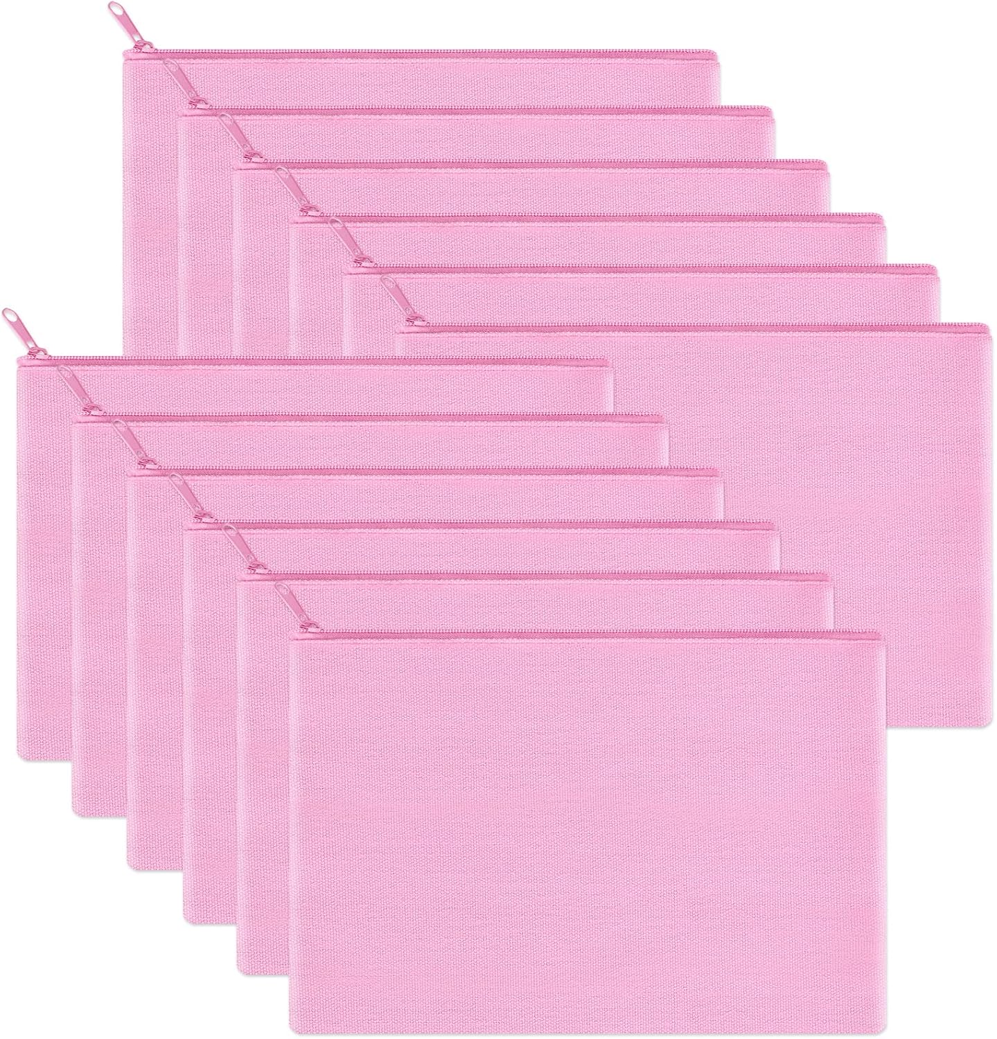 12 Pieces Cotton Canvas Makeup Bag, Multipurpose Cosmetic Bag with Zipper Travel Toiletry Pouch, Blank DIY Craft Bag (Pink, M)