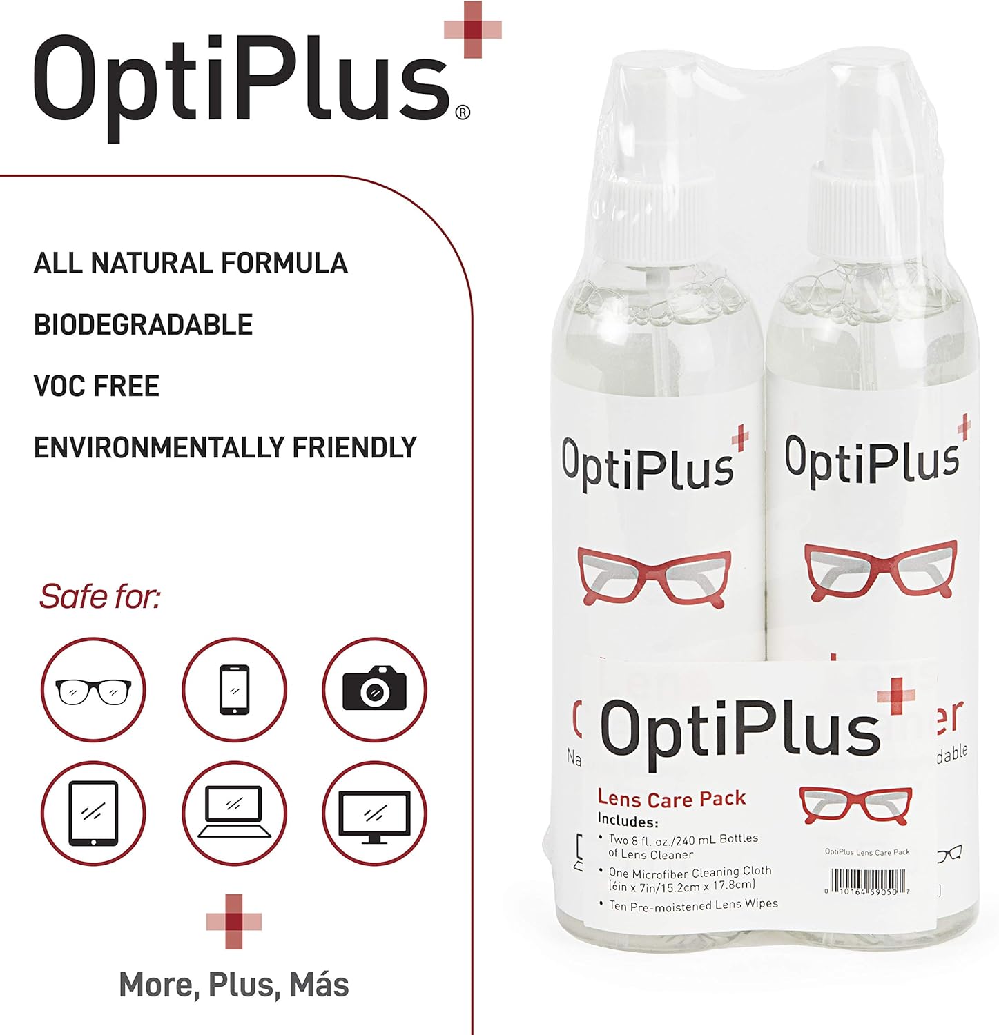 OptiPlus 16oz All Natural Lens and Screen Cleaning Pack, Lens Wipes, Microfiber Cloth and 16 x 16 Microfiber Terry Towel 3 Pack (Grey)