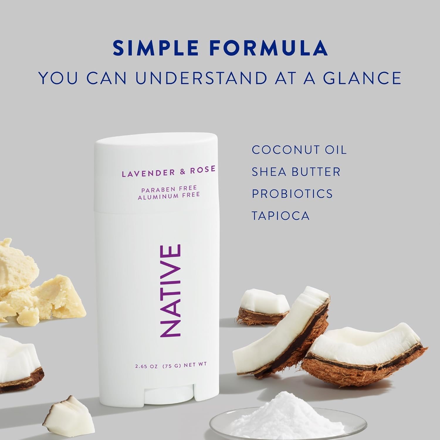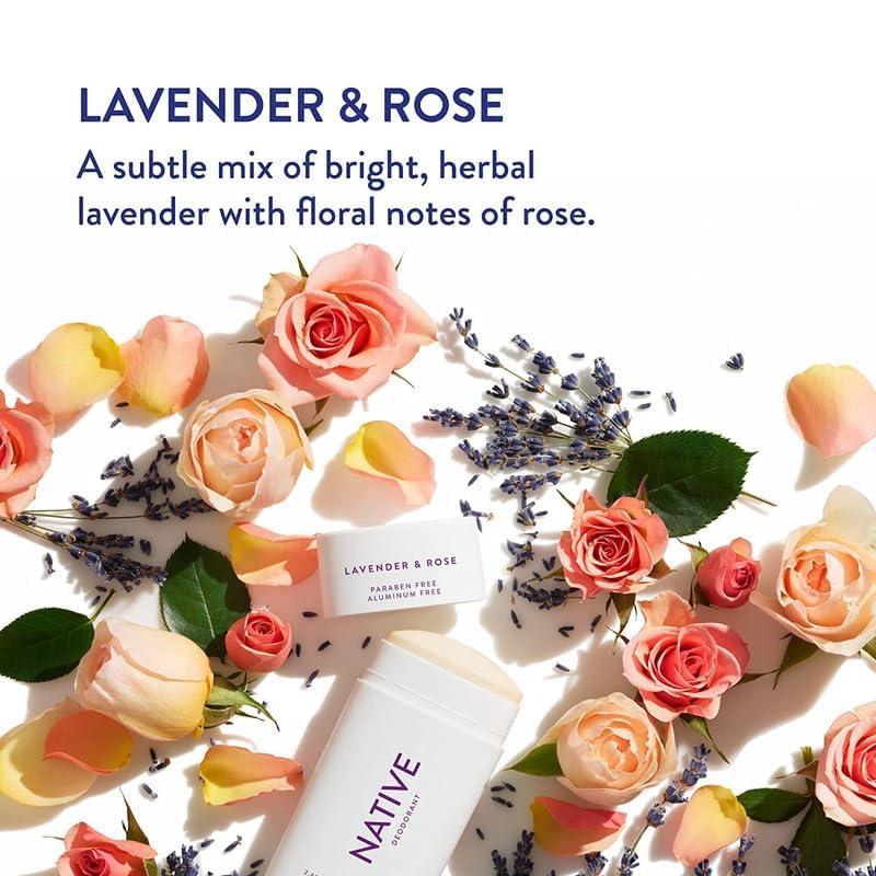 Native Deodorant Contains Naturally Derived Ingredients, 72 Hour Odor Control | Deodorant for Women and Men, Aluminum Free with Baking Soda, Coconut Oil and Shea Butter | Lavender & Rose, 2-Pack