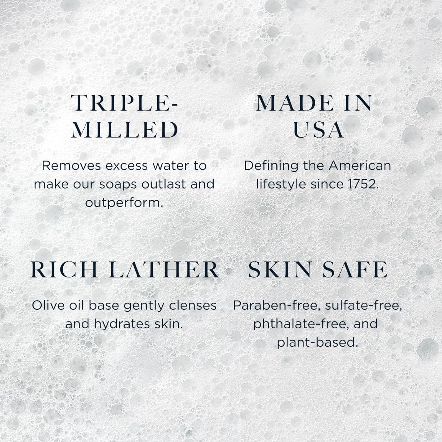 - Triple-Milled for Superior Quality: This luxurious bar soap is triple-milled for a dense, long-lasting lather. Glycerin-rich to deeply moisturize, it leaves skin feeling soft, smooth, and lightly fragranced.