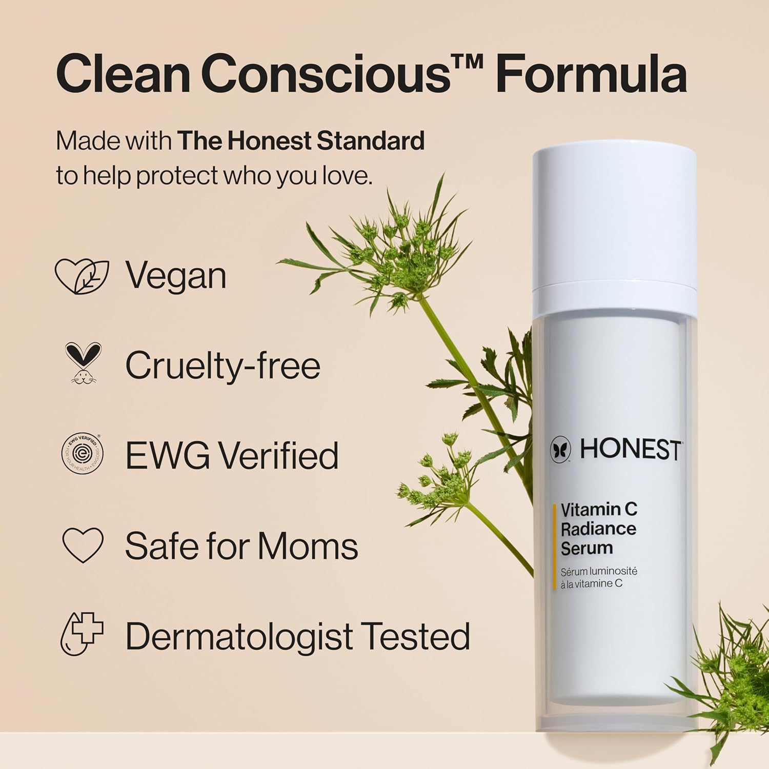 Honest Beauty Mini Vitamin C Radiance Serum | Improves + Brightens Skin Tone and Complexion | Gentle for Sensitive Skin, Fragrance Free, Vegan | Travel Size, .33 fl oz