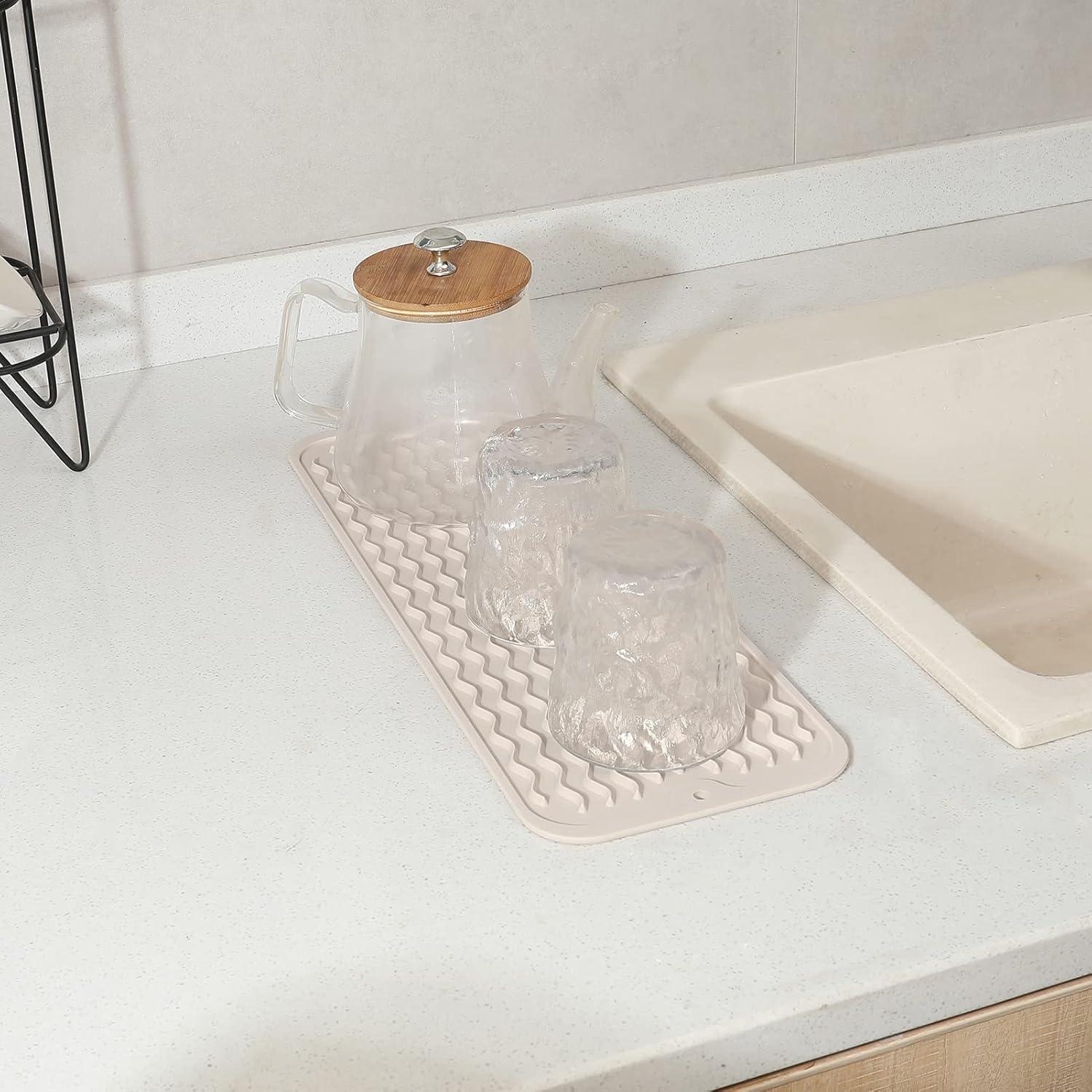 Silicone Dish Drying Mat for Multiple Usage,Easy clean,Eco-friendly,Heat-resistant Silicone Mat for Kitchen Counter,Sink,Bar,Bottle,or Cup Tapioca M 17 inches x 6 inches