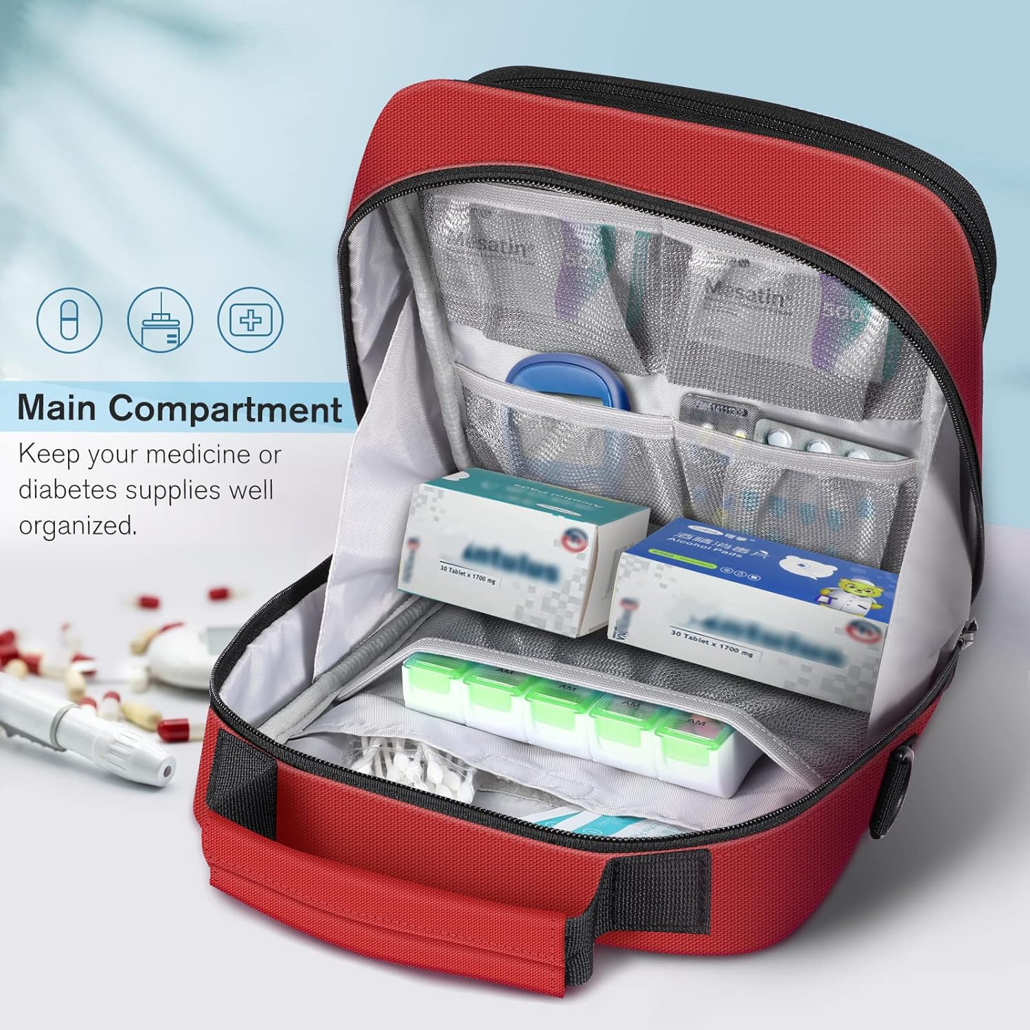 - 【Water-Resistant & Versatility】Made of water repellent & wear-resistant exterior, this medical organizer bag can also used as a diabetes care bag or a reliable first aid kit bag for camping or hiking, keep your Epipen, Auvi-Q, Inhaler, Spacer, pills or other medicines and personal belongings well organized.
