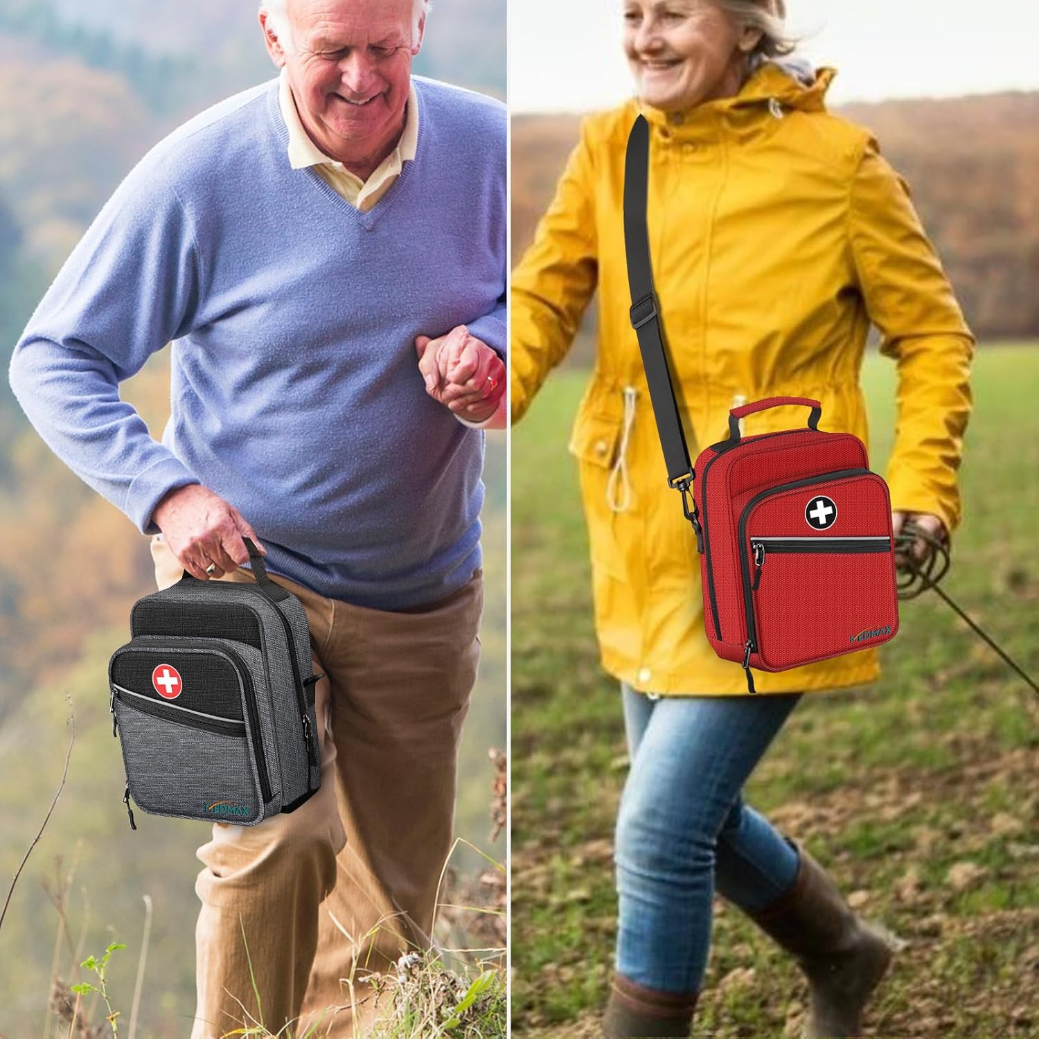 - 【Travel Friendly】Come with portable hand strap and detachable & adjustable shoulder strap, prepared for all situations and go anywhere without worry, perfectly portable and convenient. With premium YKK zipper, this compact medicine carrying case is durable and secure for quickly access. Reflective strip make you noticeable when at night.